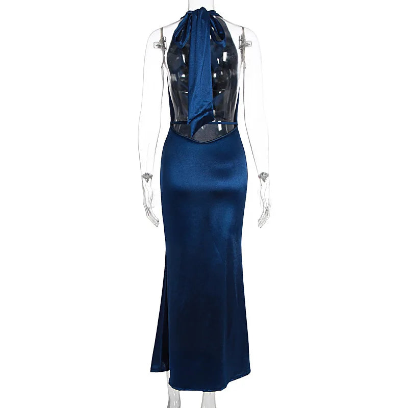 MQTIME - Sexy Halter Neck Backless Bodycon Party Club Evening Dress Women Elegant Sleeveless Long Dress Spring New Vestidos 2026