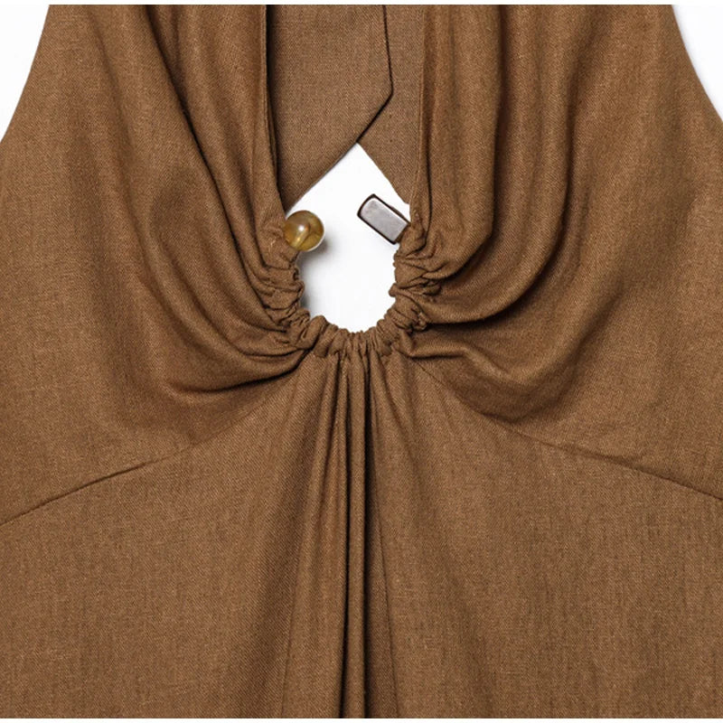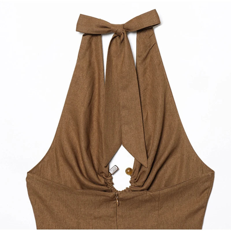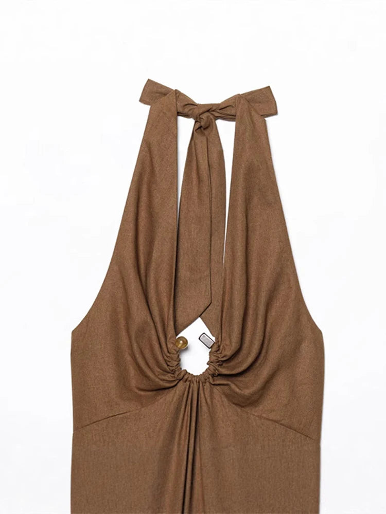 MQTIME - Sexy Hollow Out Women's Dressess Sexy Slim Halter Sleeveless Hip Package Long Robes Female 2025 Summer New Lady Beach Club Dress