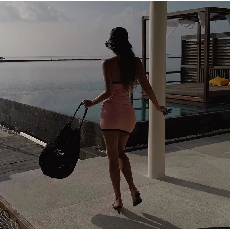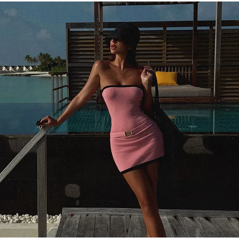 MQTIME - Sexy Knit Mini Dress Women Strapless Sleeveless Backless With Belt Slim Hip Package Dresses Female 2025 Spring Summer Lady Robe