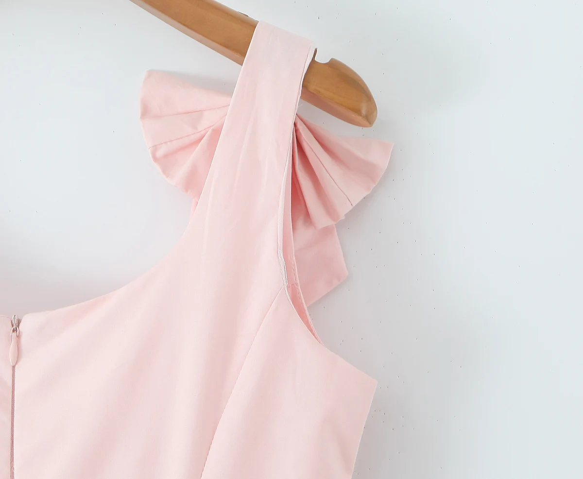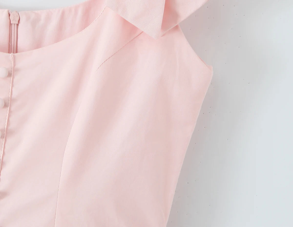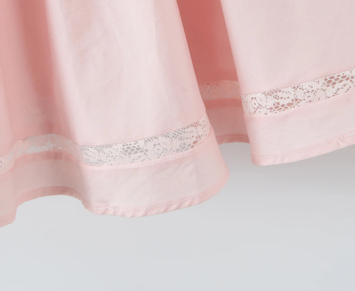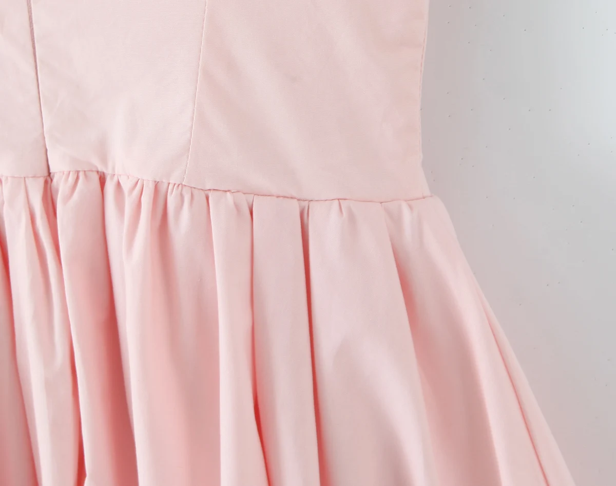 MQTIME - Sexy Pink 3D Bow Strap Tank Dress Women Slim Low Waist Spliced Lace Pleated Hem Ball Gown Sling Dresses Short Party Robe