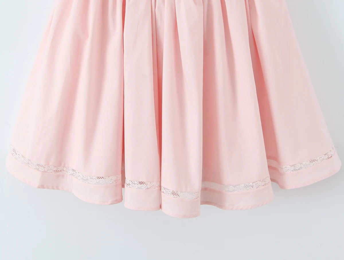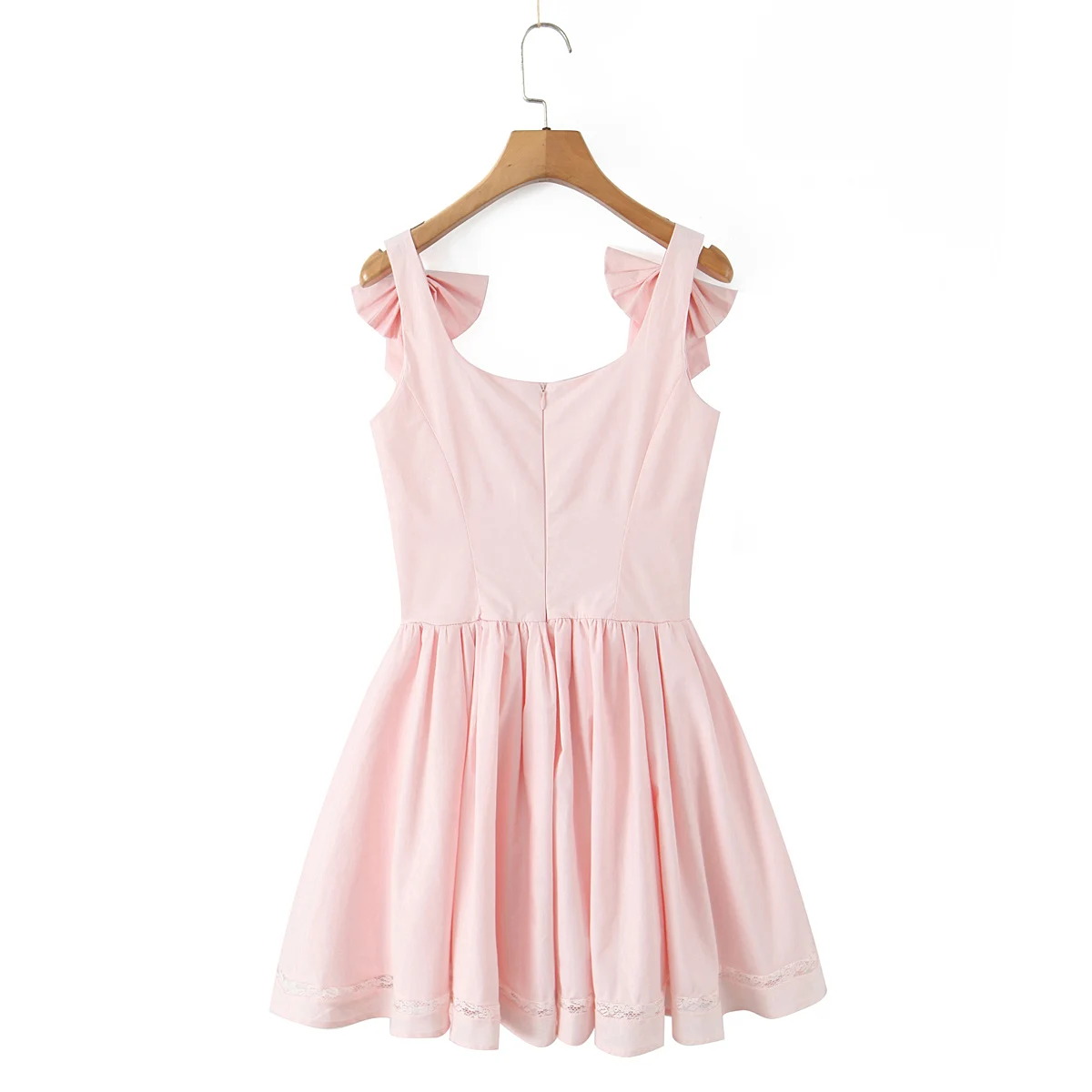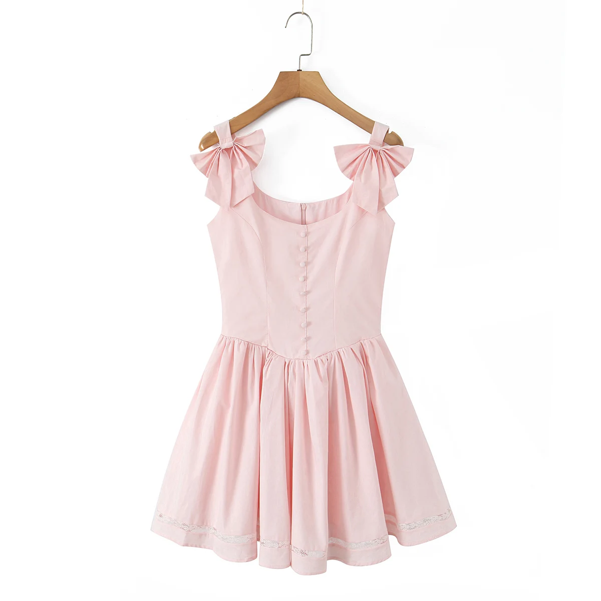 MQTIME - Sexy Pink 3D Bow Strap Tank Dress Women Slim Low Waist Spliced Lace Pleated Hem Ball Gown Sling Dresses Short Party Robe