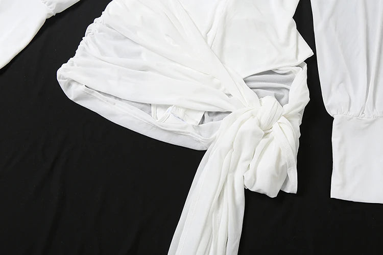 MQTIME - Solid Office Women Mini Dress Simple Hipster Full Sleeve Lapel Zip-up Bandage Stacked Vestidos Female Trend Chic Bodycon