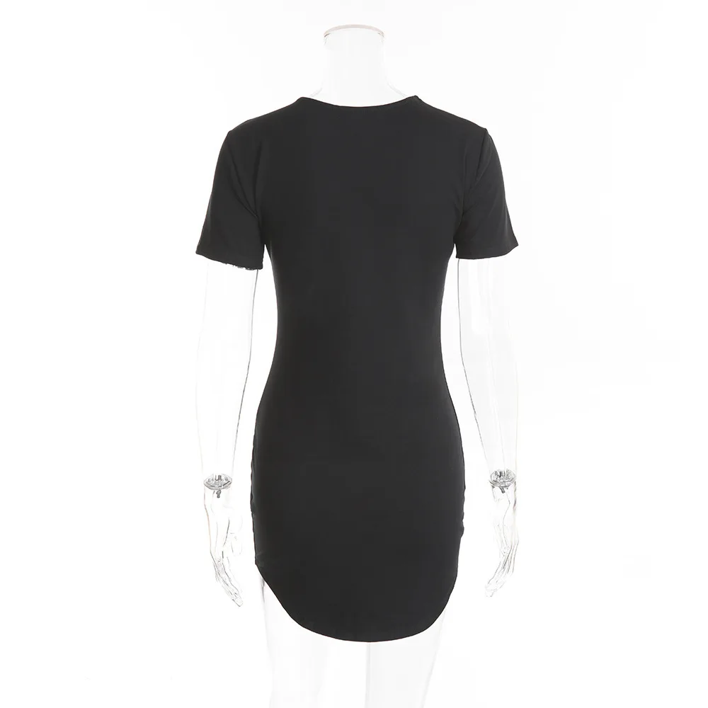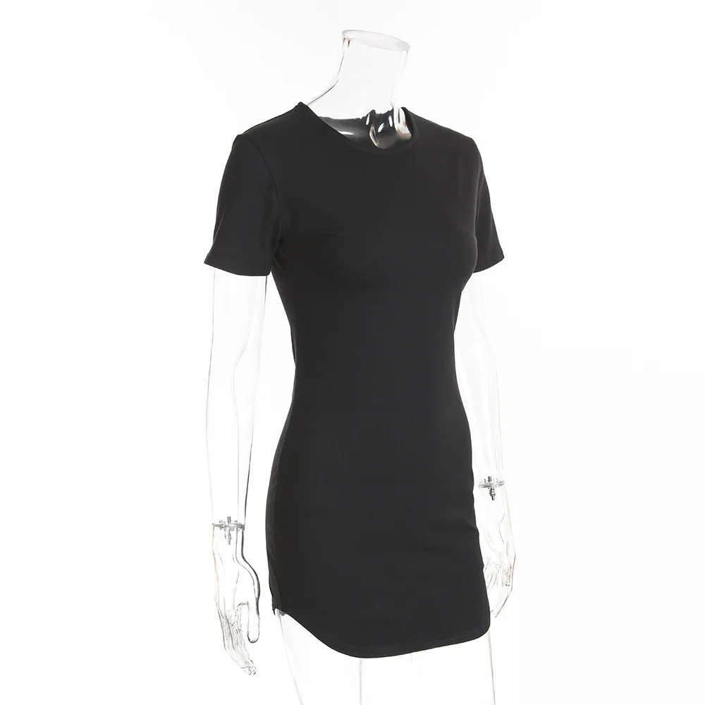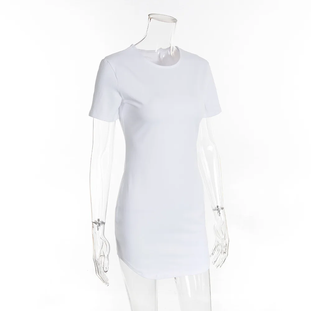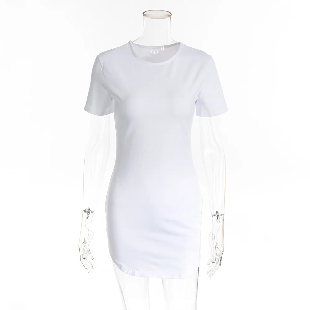Mqtime Solid round neck dress summer casual slim short sleeve wrap hip comfortable breathable white Miniskirt high-grade