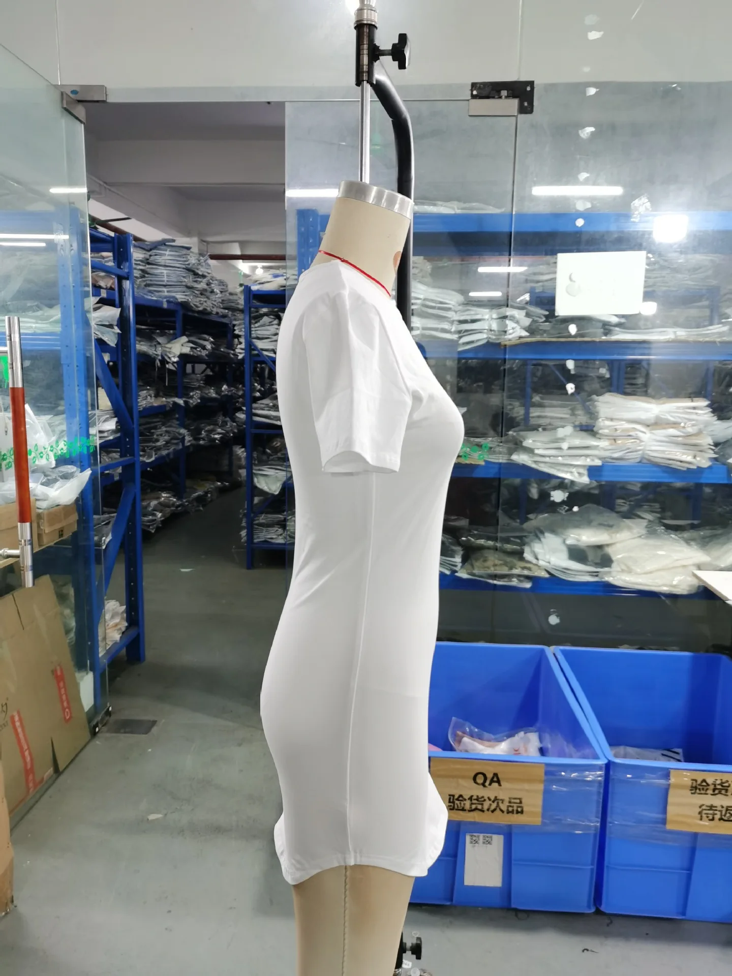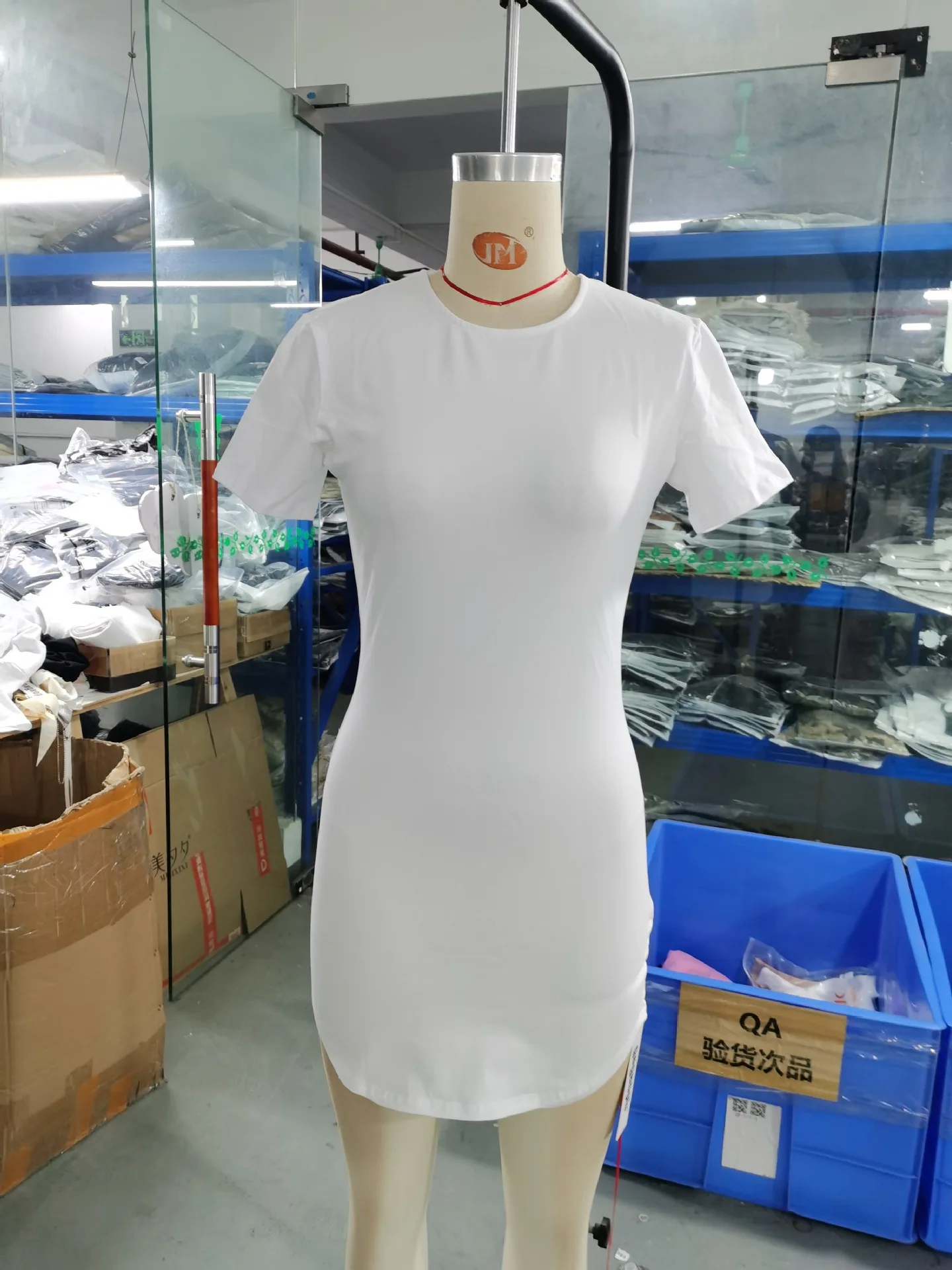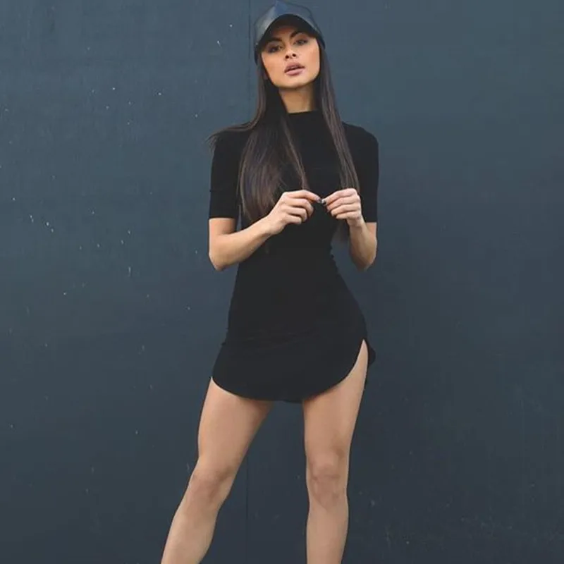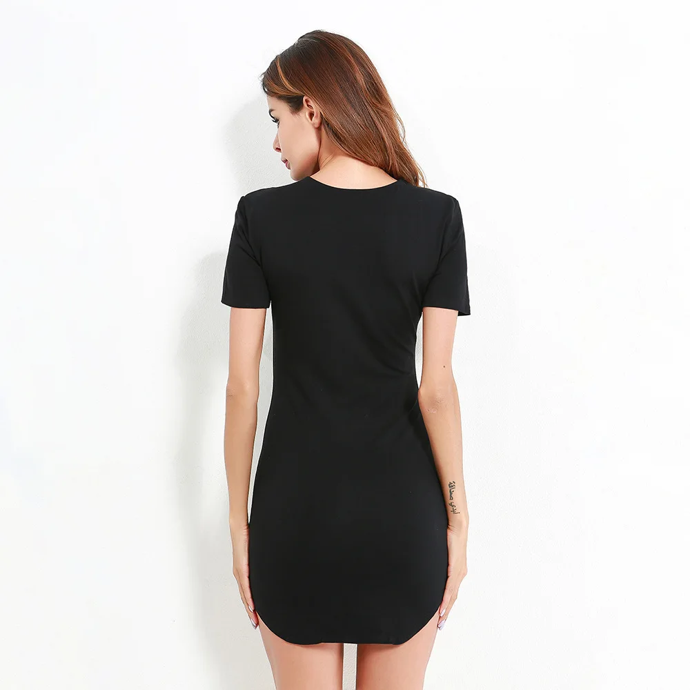 Mqtime Solid round neck dress summer casual slim short sleeve wrap hip comfortable breathable white Miniskirt high-grade