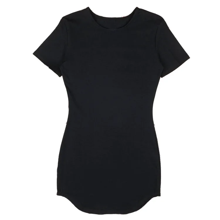 Mqtime Solid round neck dress summer casual slim short sleeve wrap hip  comfortable breathable white Miniskirt high-grade