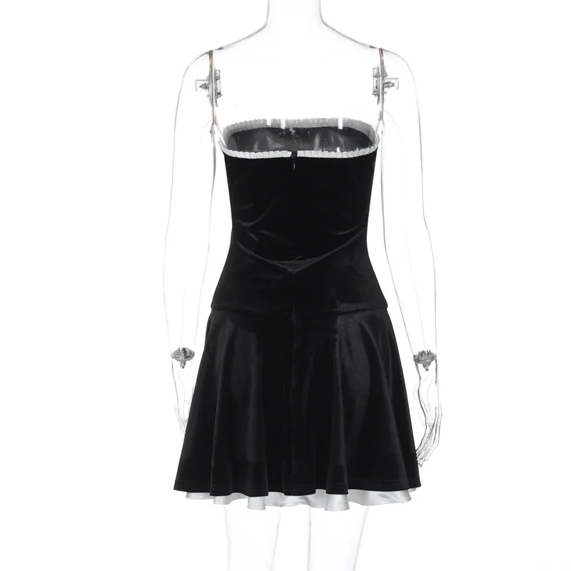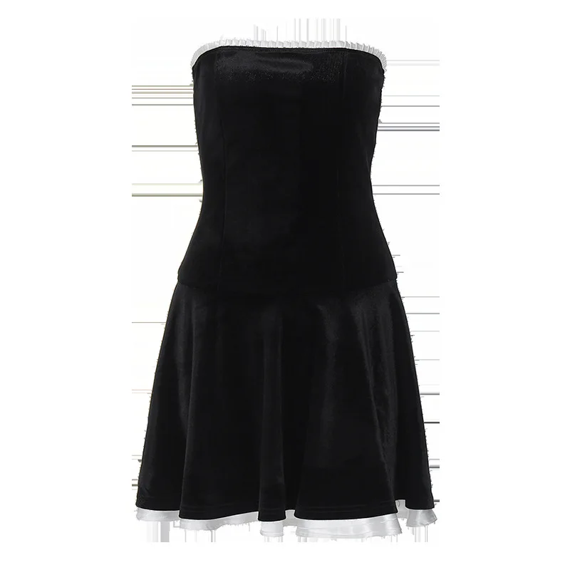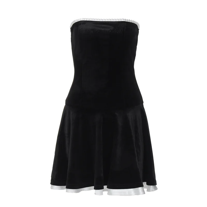 Mqtime Spring Sexy Solid Color Dress Wrapped Chest Ruffle Casual Short Skirt 2024 New Versatile Fashion Ruffle Edge Evening Dress