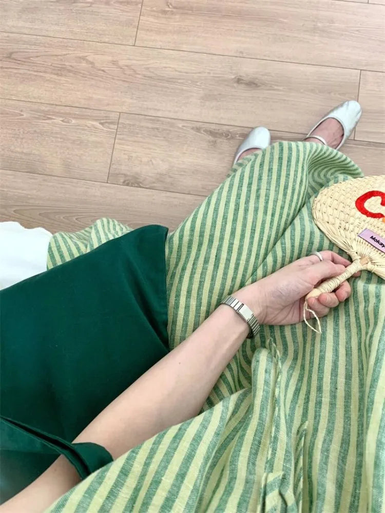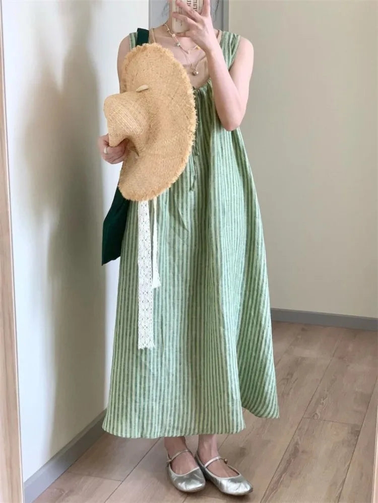 MQTIME  -  Striped Dresses Women Sleeveless Slash Neck Loose Summer Fashion Holiday Casual Party Dress Female Temperament Elegant
