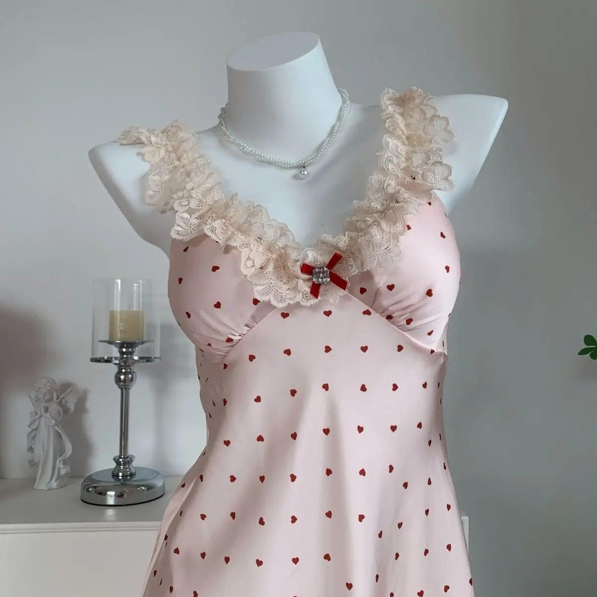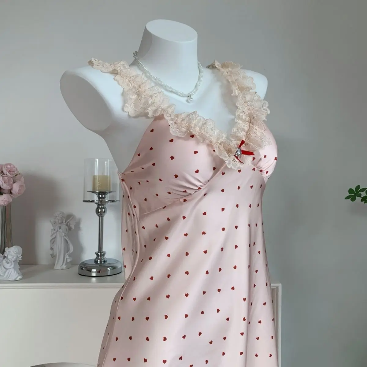 MQTIME - Summer Cute Nightgown Suspender Caring Sweet Sexy Lace Polka Dot Pajamas Home Clothes Chest Cushion Dresses
