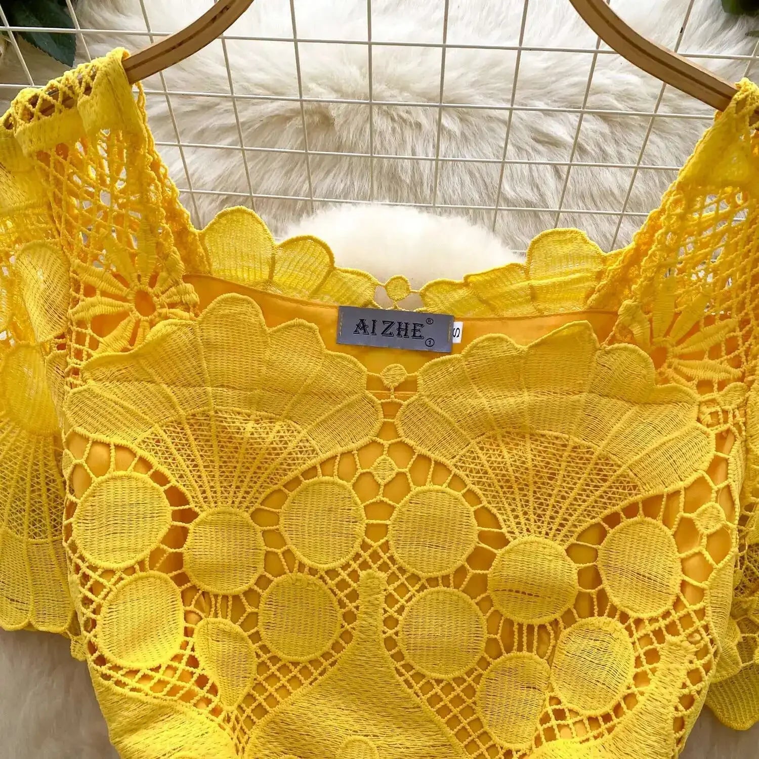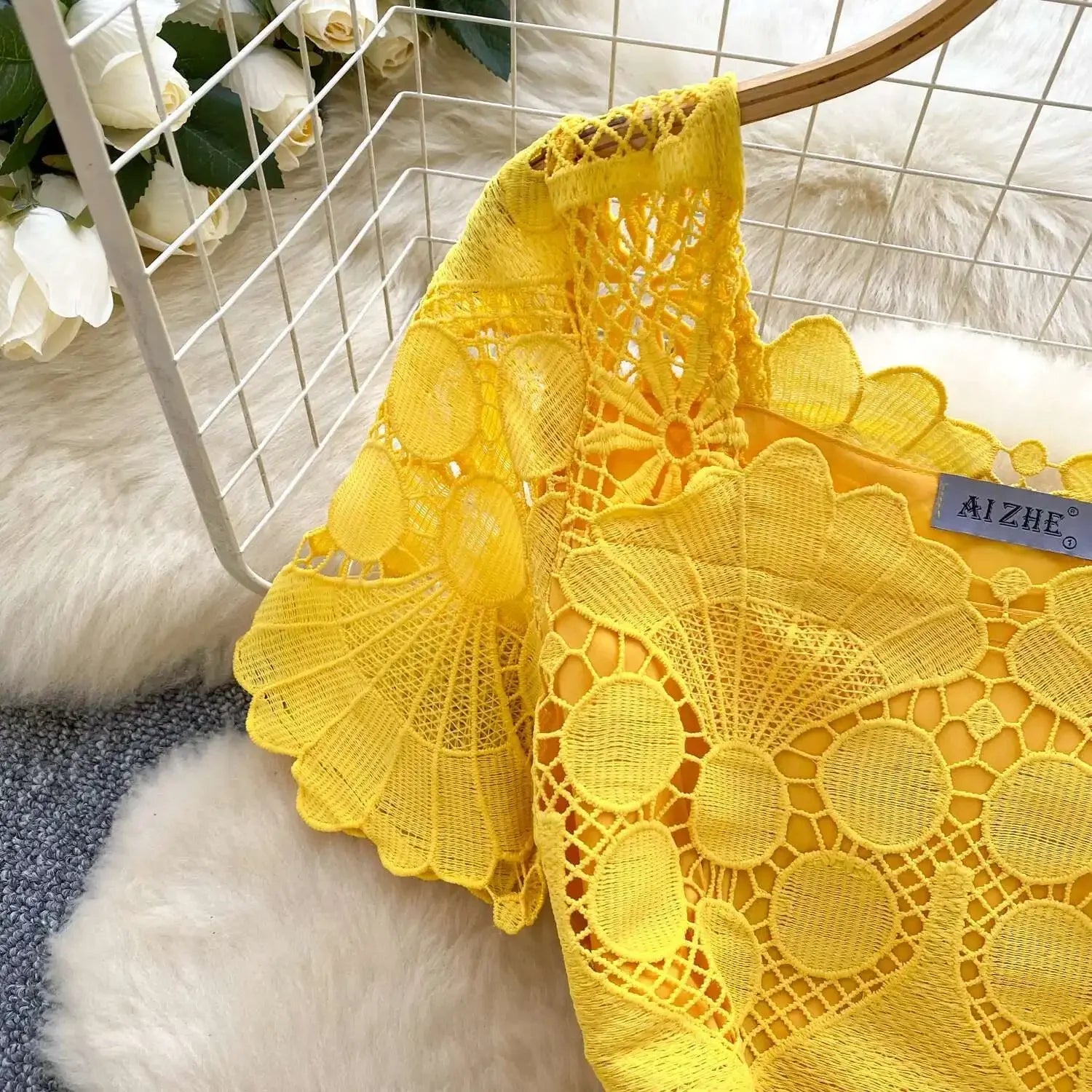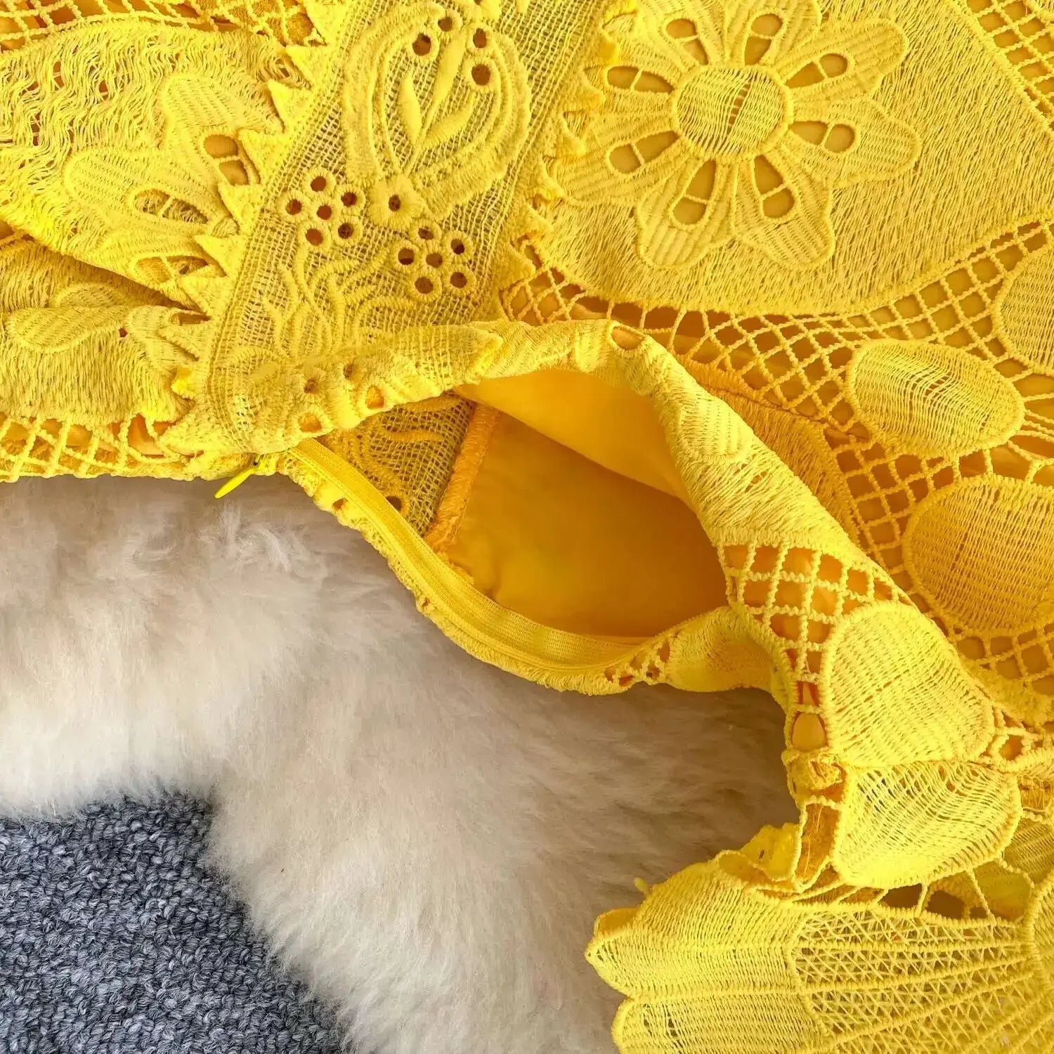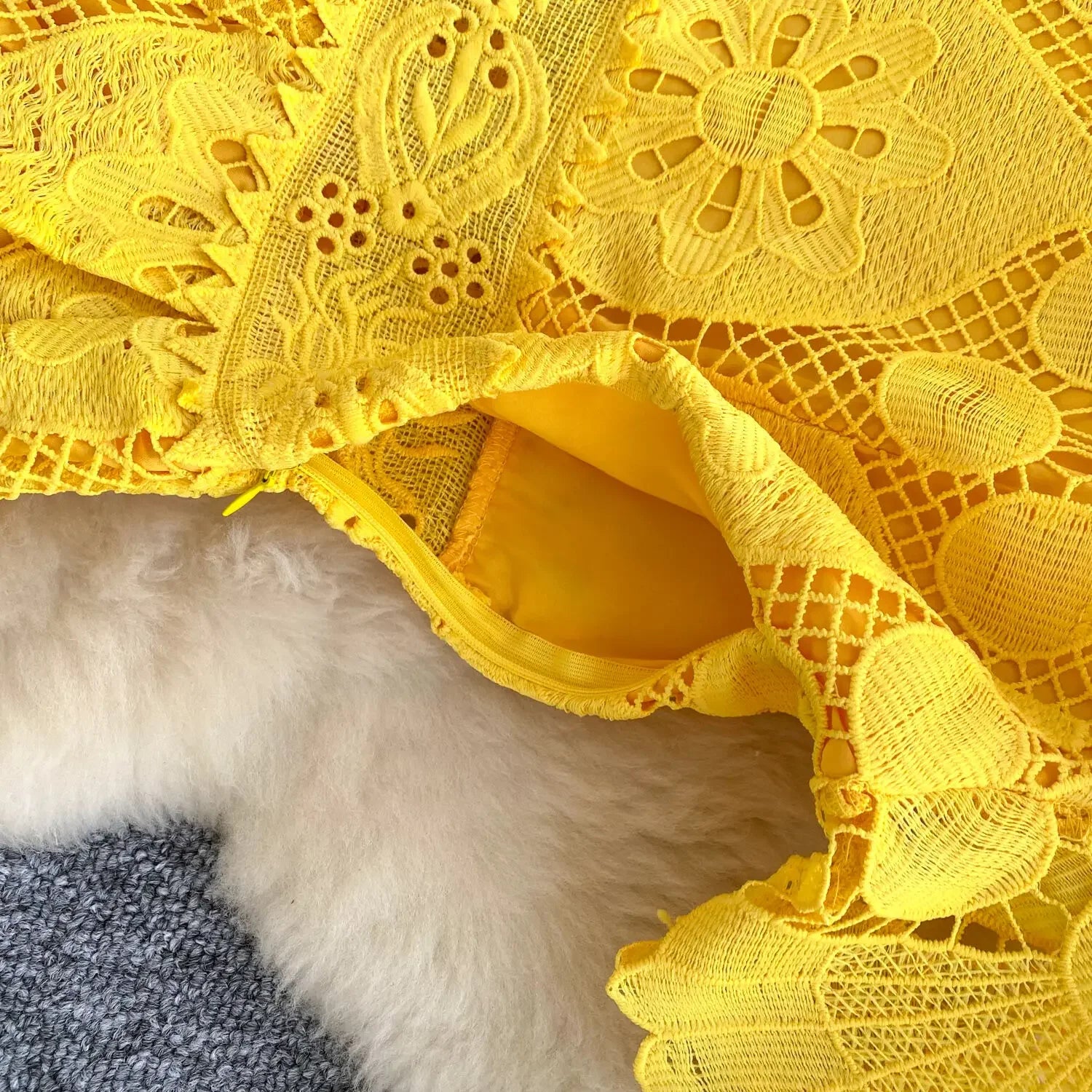 MQTIME - Summer Elegant Hollow Out Embroidery Lace Long Dresses Women Holiday Short Sleeve Flower Retro Evening Party Female Vestidos