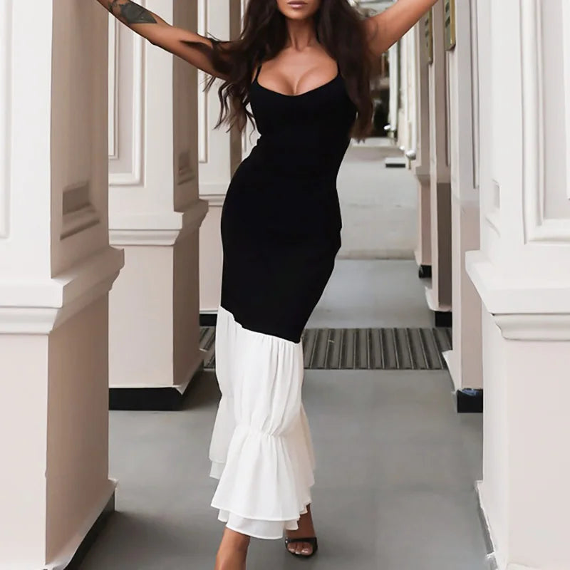 MQTIME - Summer Fashion Draped Evening Party Dresses 2025 Sexy Sleeveless Hight Waist Sling Dress Women Elegant Clashing Color Long Dress