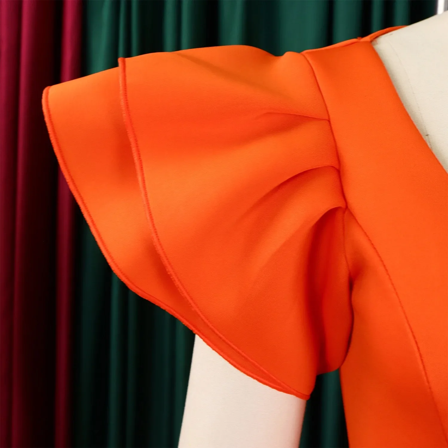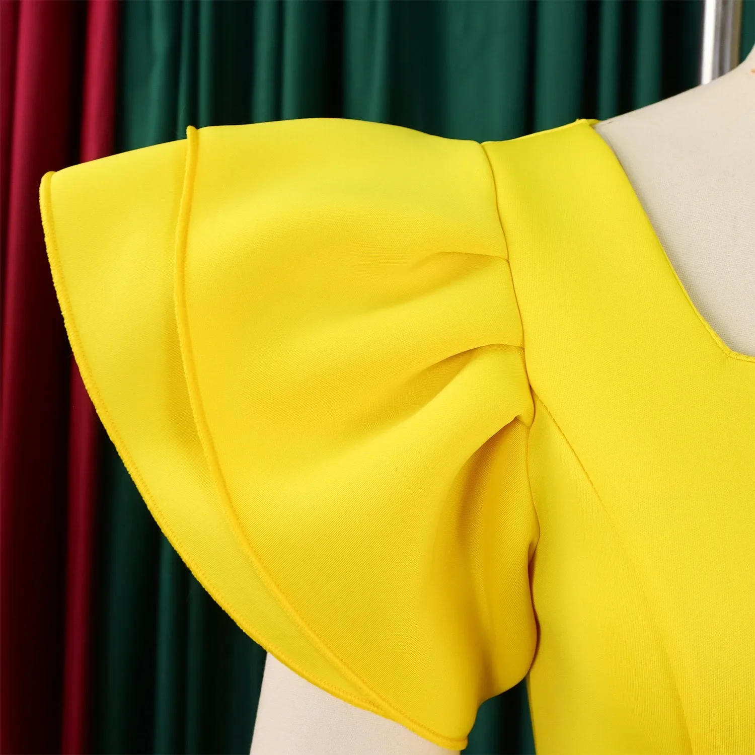 MQTIME - Summer New Elegant Bodycon Dresses Women Square Neck Ruffles Sleeve Sheath Package Hips Business Work Dresses