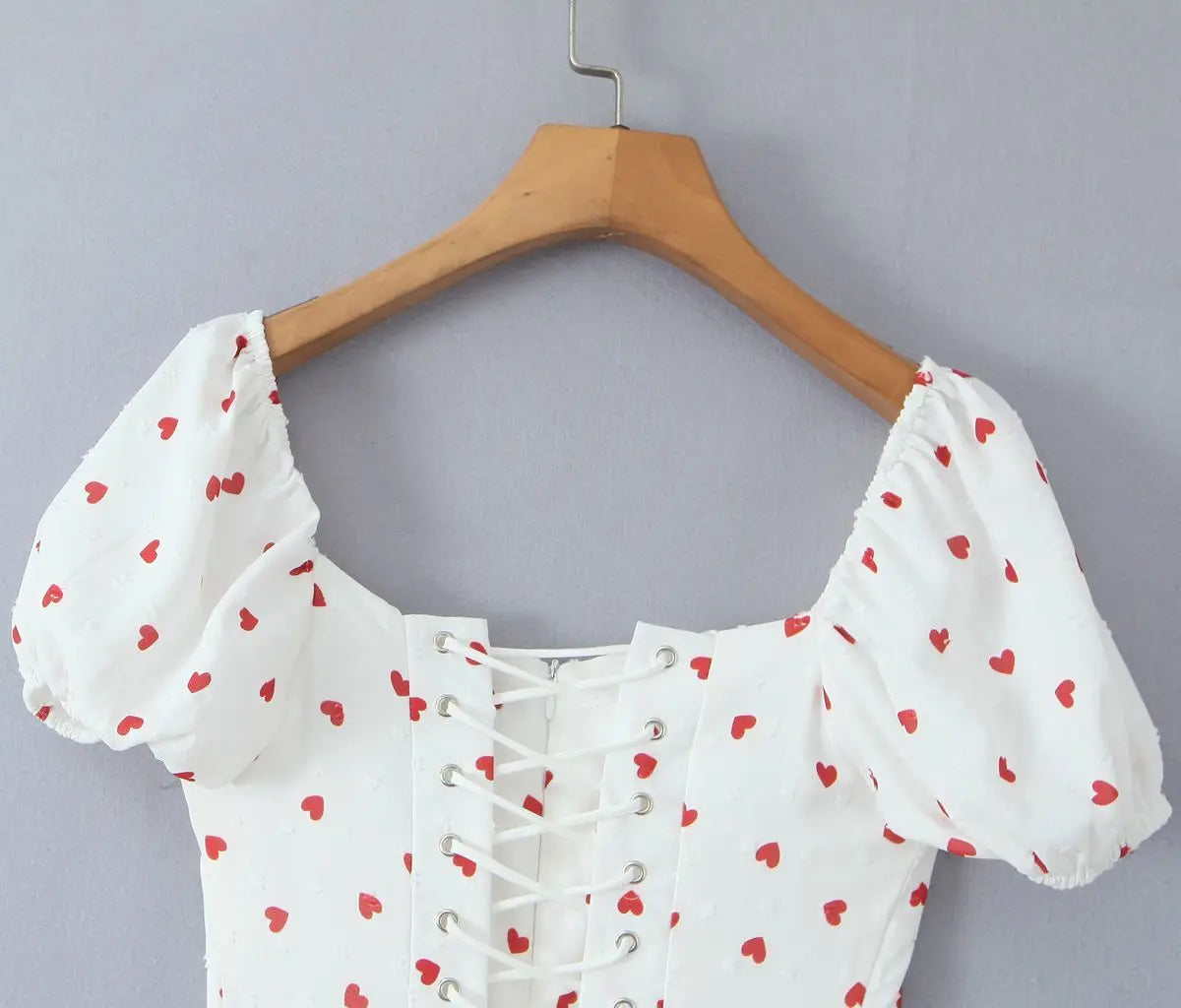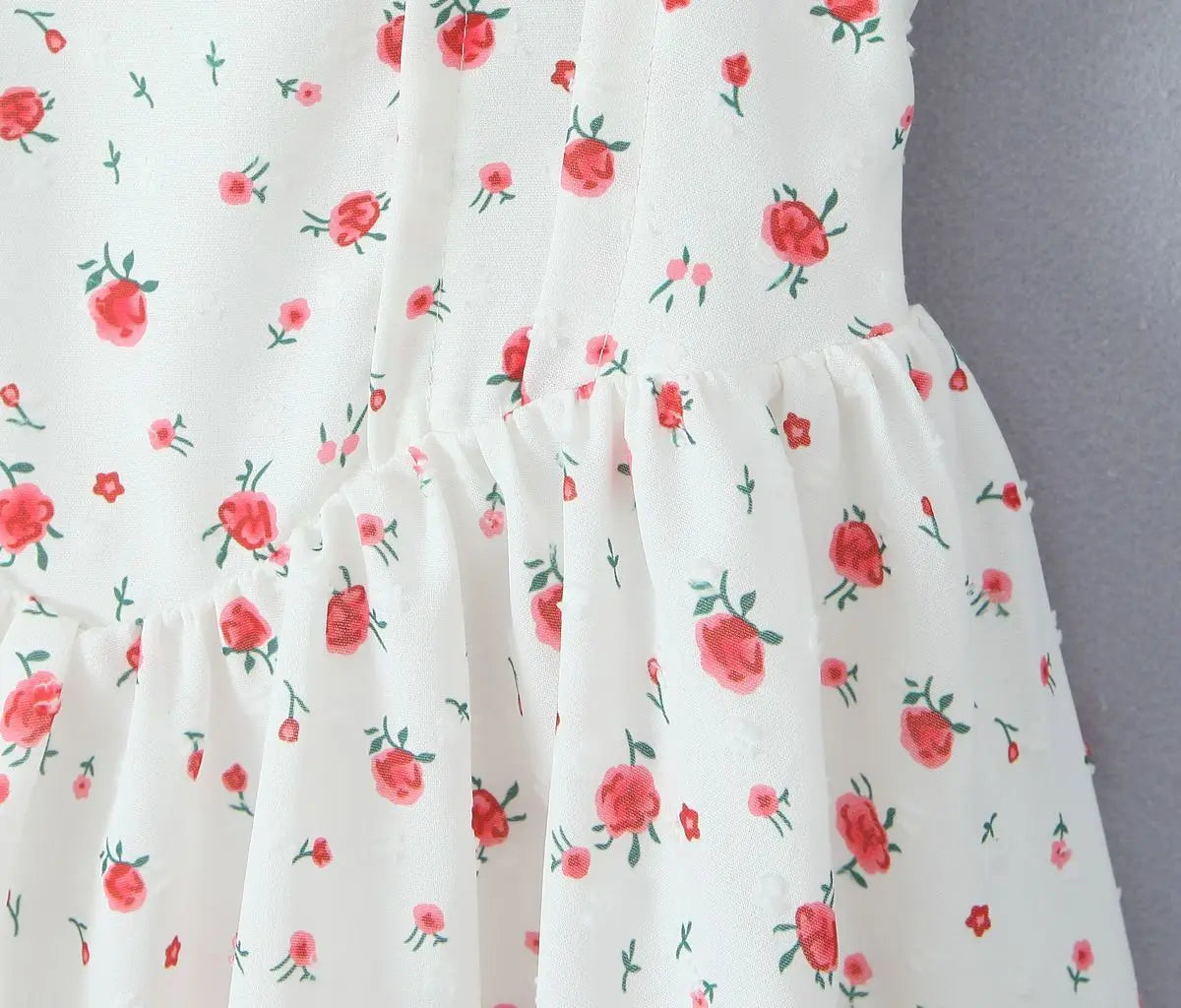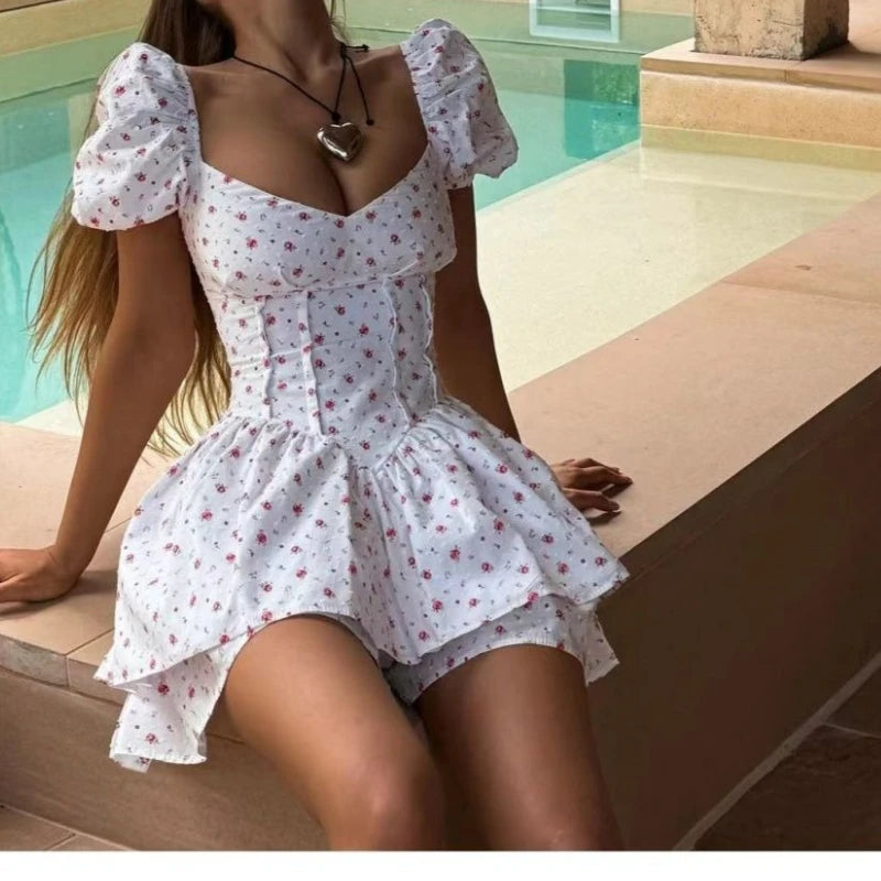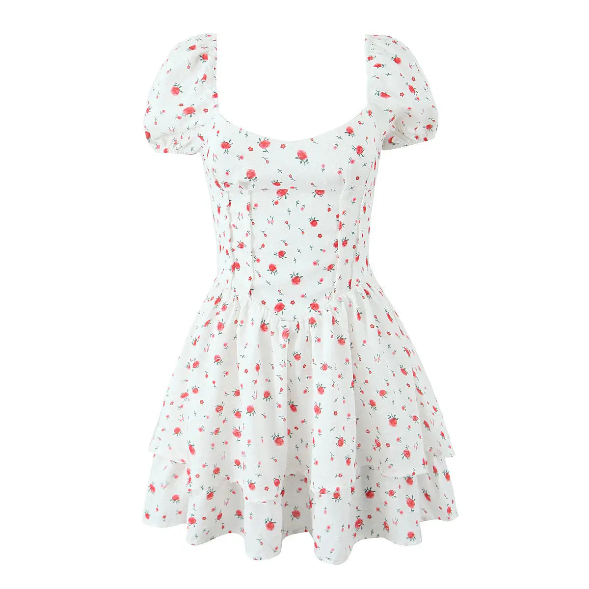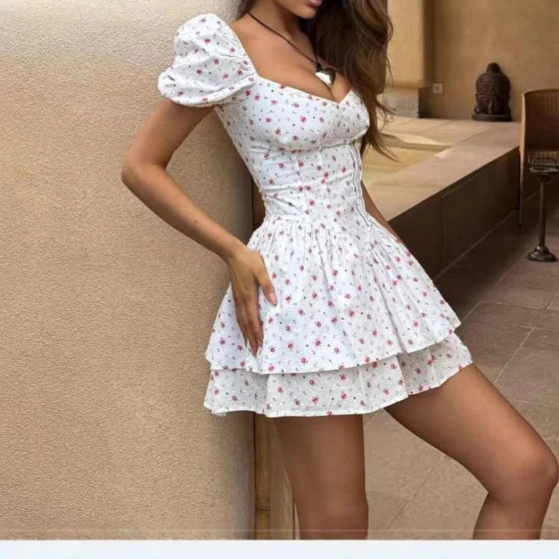 MQTIME - Summer New French Sweet Style Strappy Cinched Waist Slimming Tiered Bubble Sleeve Dress