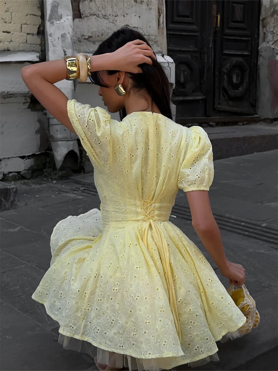 MQTIME  -  Summer New Sexy Waist Cinching Women Strap Dress Simple Embroidery Femalesolid Color Short Dresses