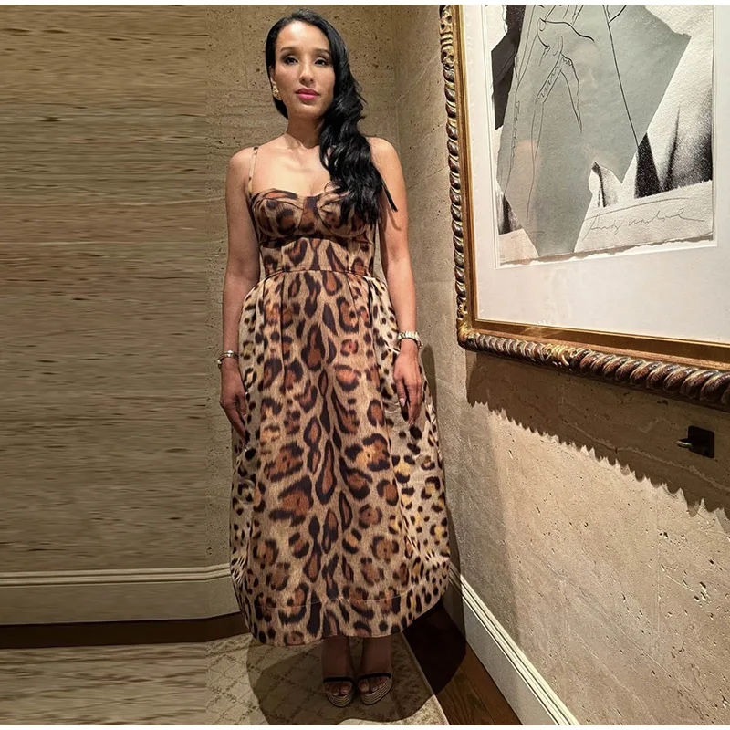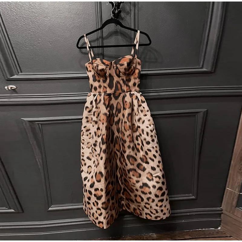 MQTIME - Vintage Leopard Sling Tube Long Dresses Women Sexy Sleeveless Slim Fit Backless Dress Female Chic Street Party Evening Vestidos