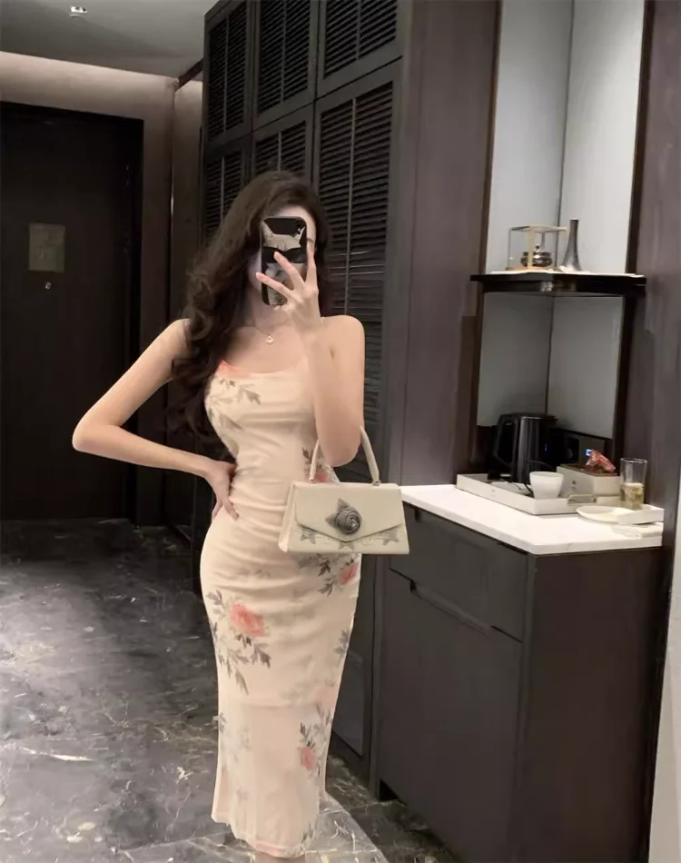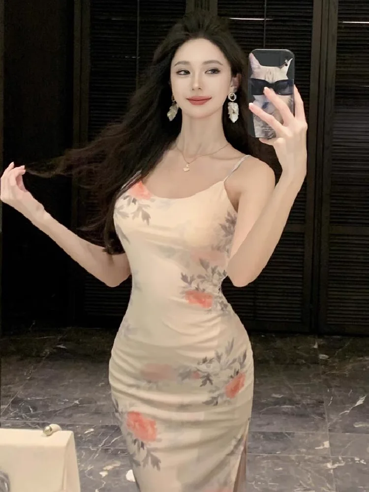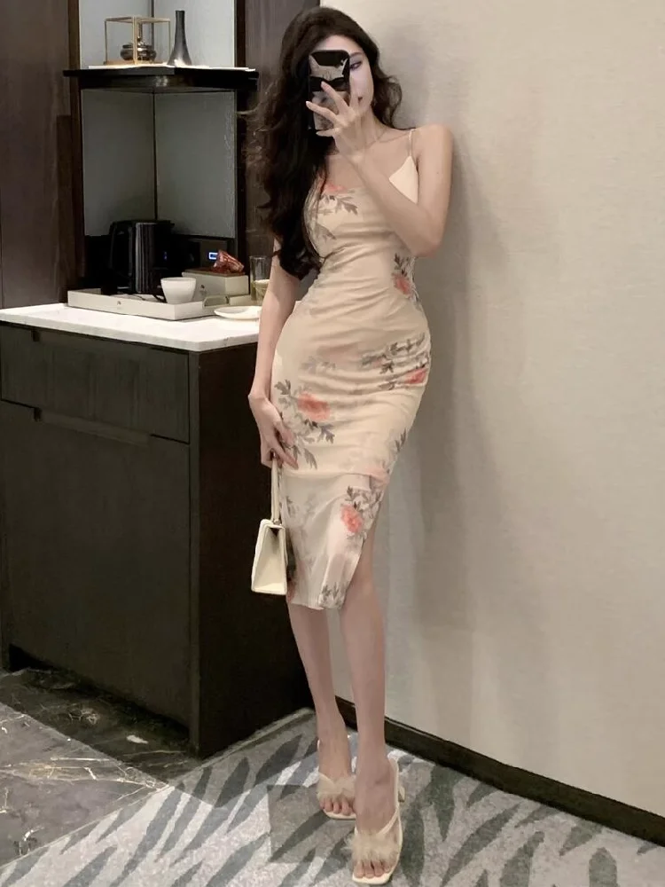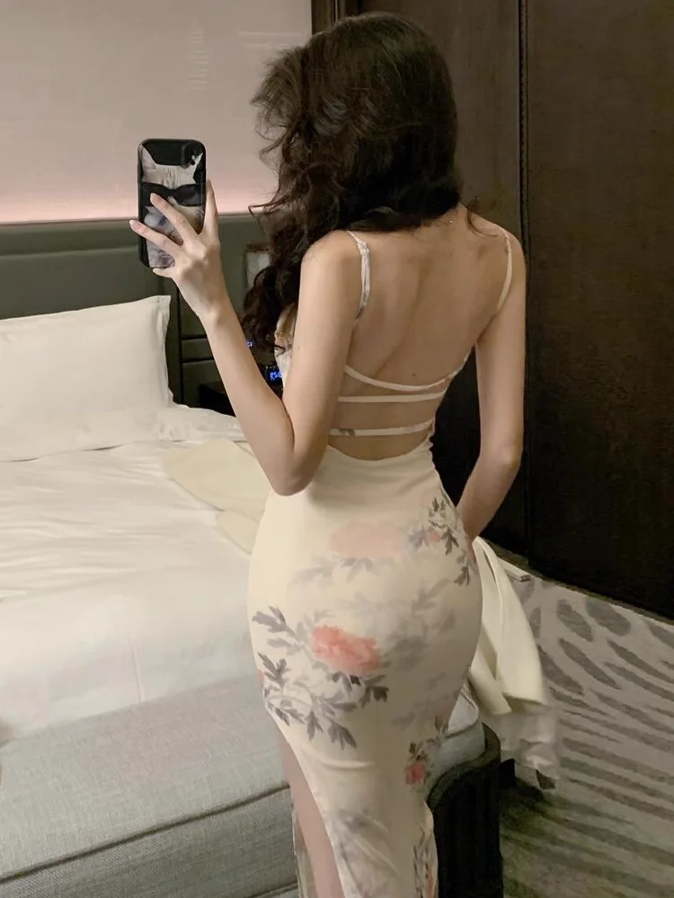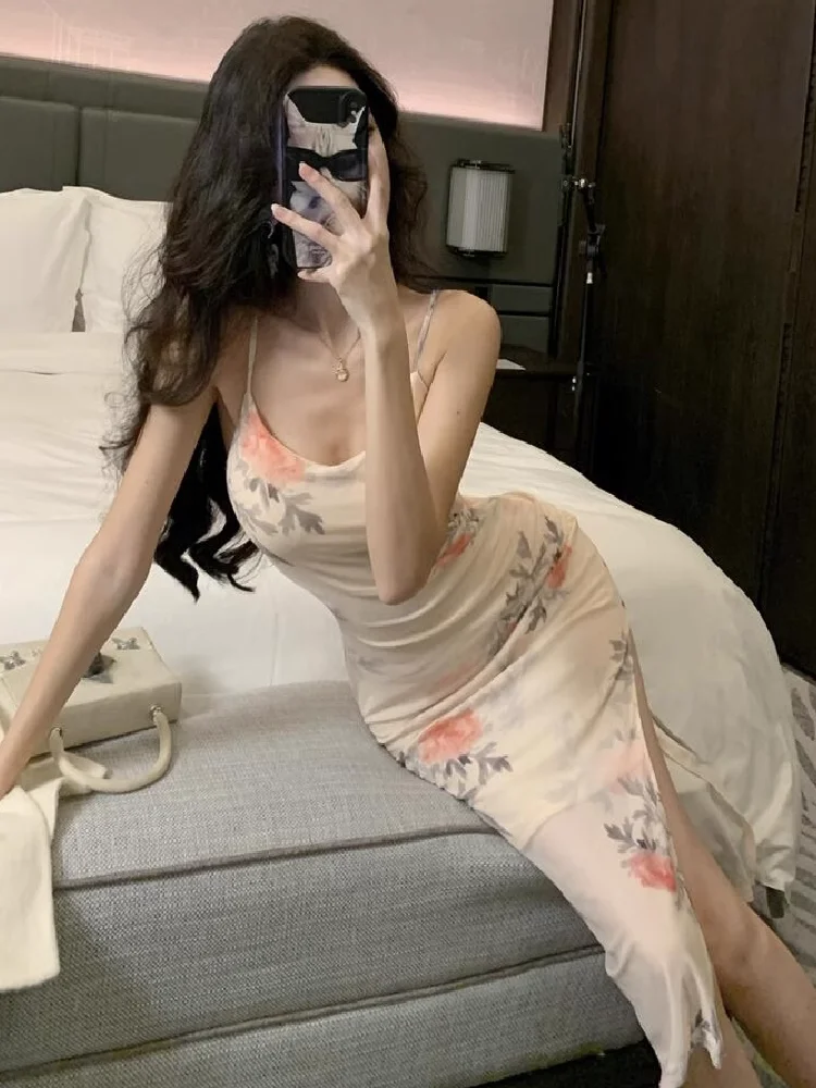 MQTIME - Woman Dress Mesh Patchwork Sleeveless Slash Neck Slim Backless Split Elegant Party Dresses Female Summer Fashion