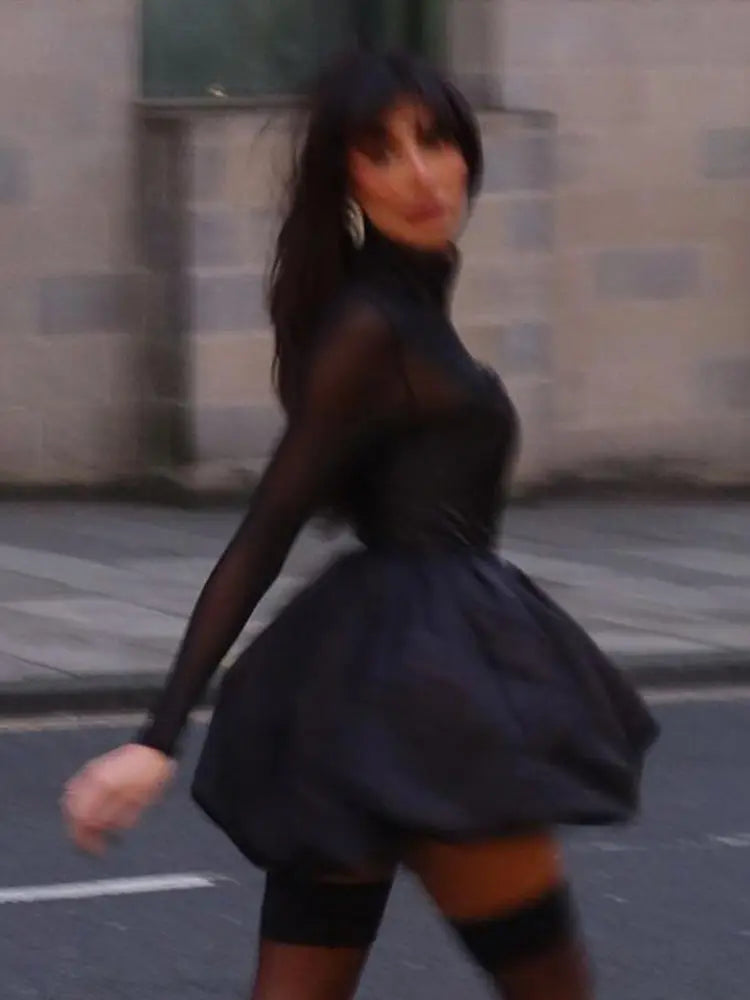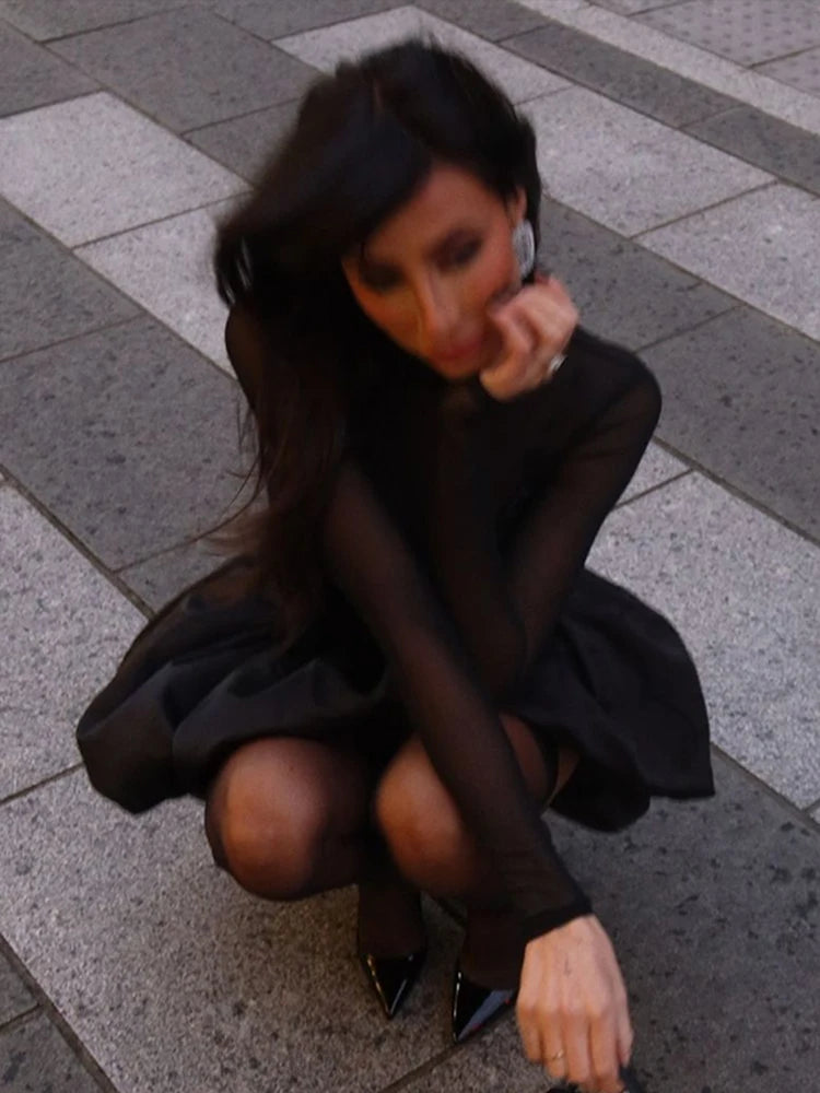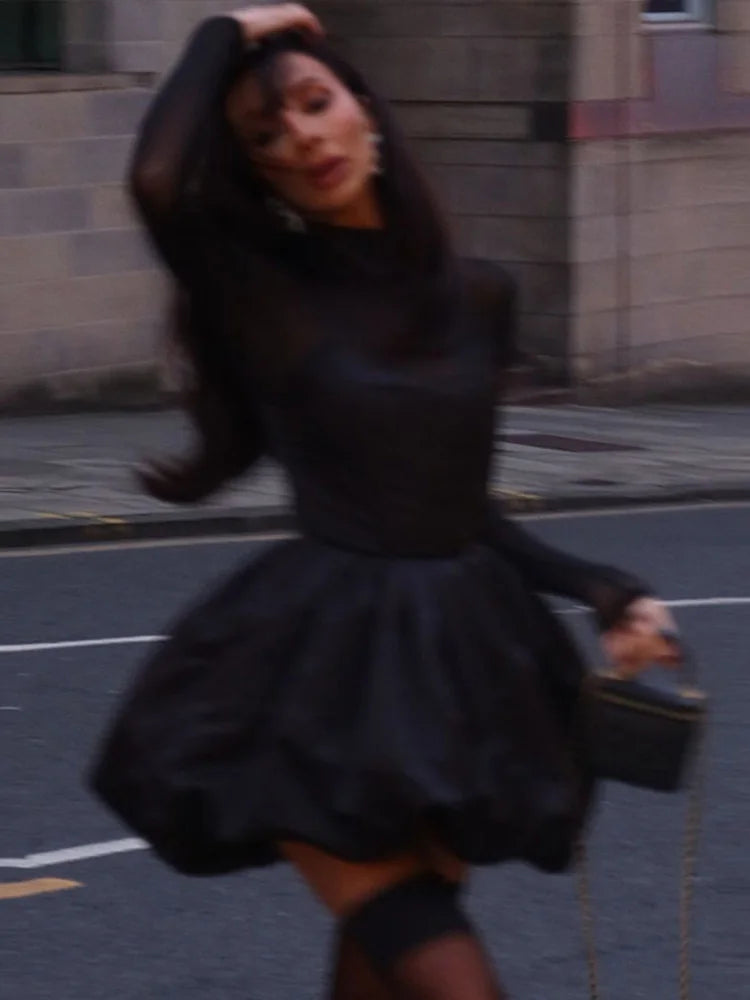 MQTIME - Women Black Pengpeng Party Dress Sexy Slim Long Sleeve O-neck Mini Dresses Female 2024 Autumn Winter Fode A-line Lady Vestidos