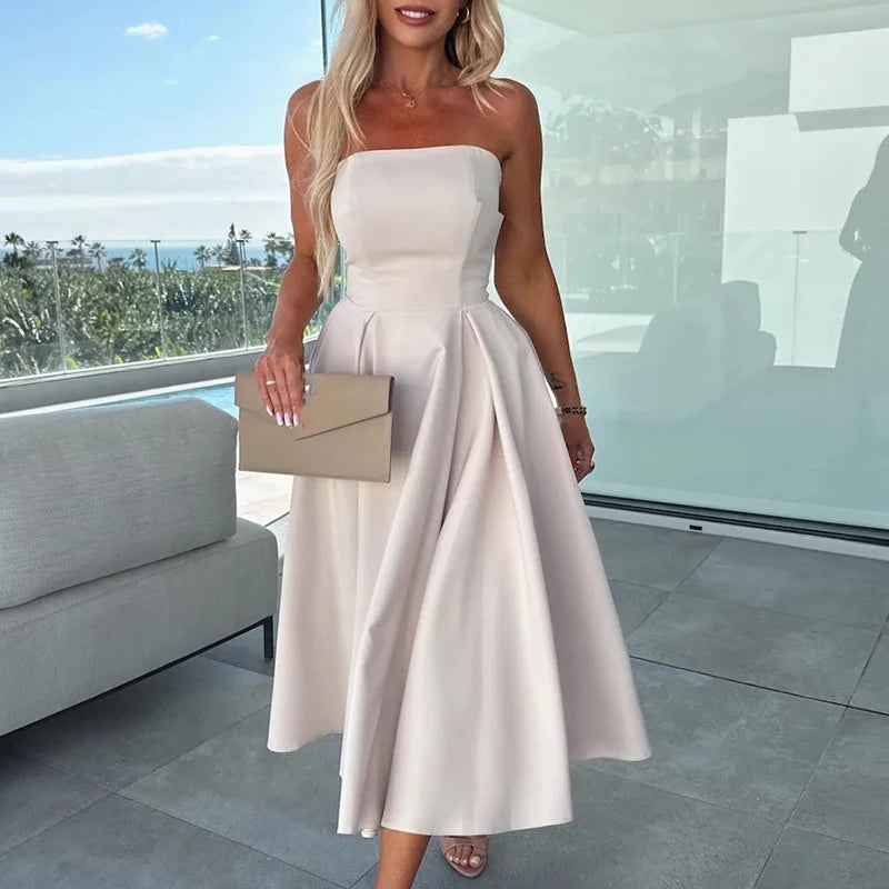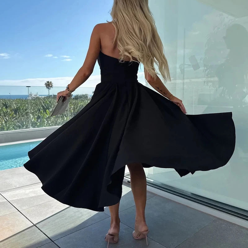 MQTIME - Women Fashion Solid Color Banquet Dress Elegant Temperament Big Hem Long Dress Sexy 2025 One Shoulder Sleeveless Party Dresses