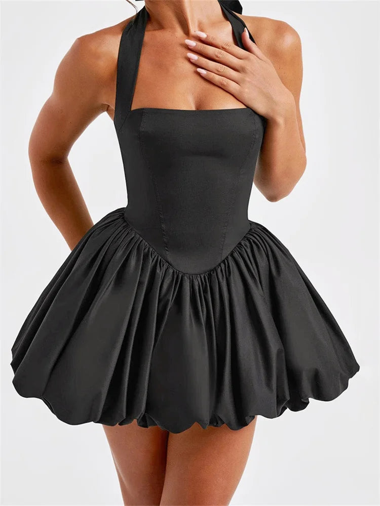 MQTIME  -  Women Halter Dress Summer Tie up Sleeveless Backless Corset Bubble Dress for Party Evening Club Streetwear