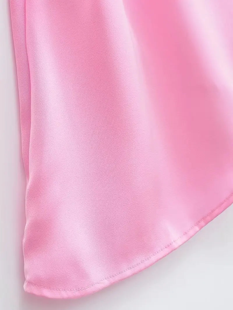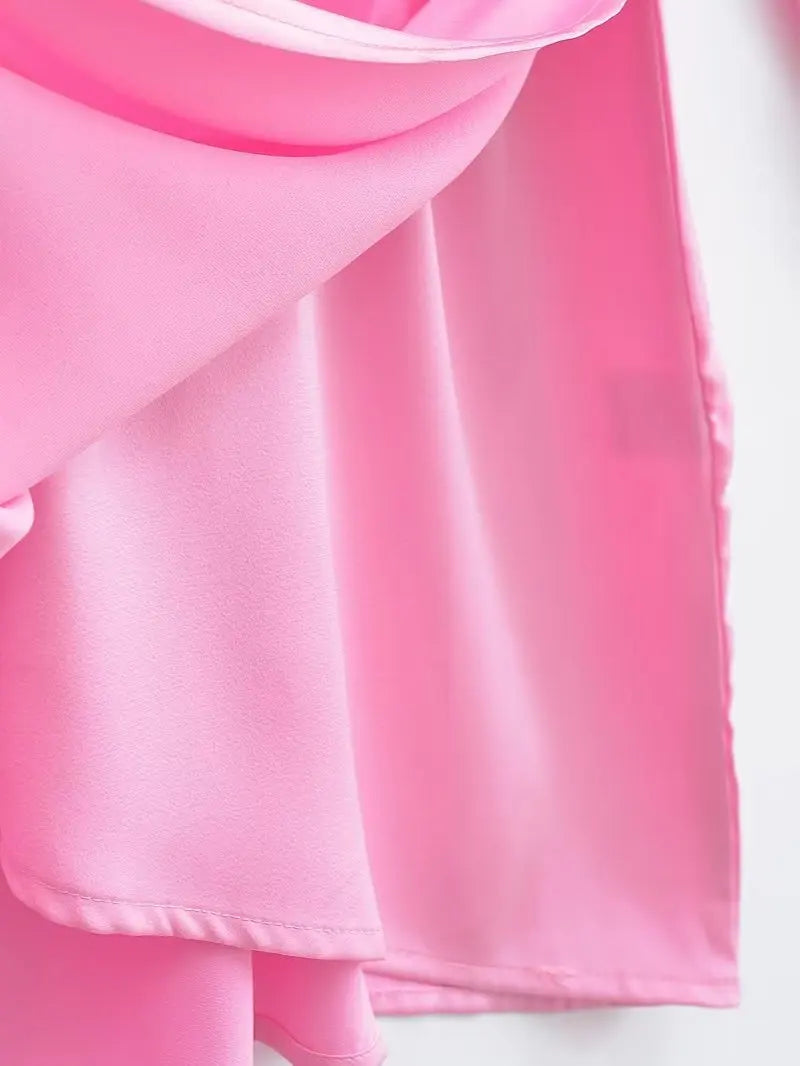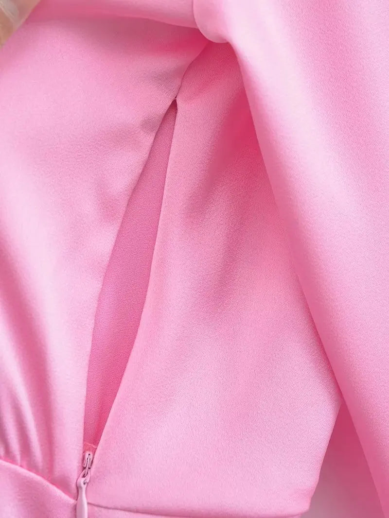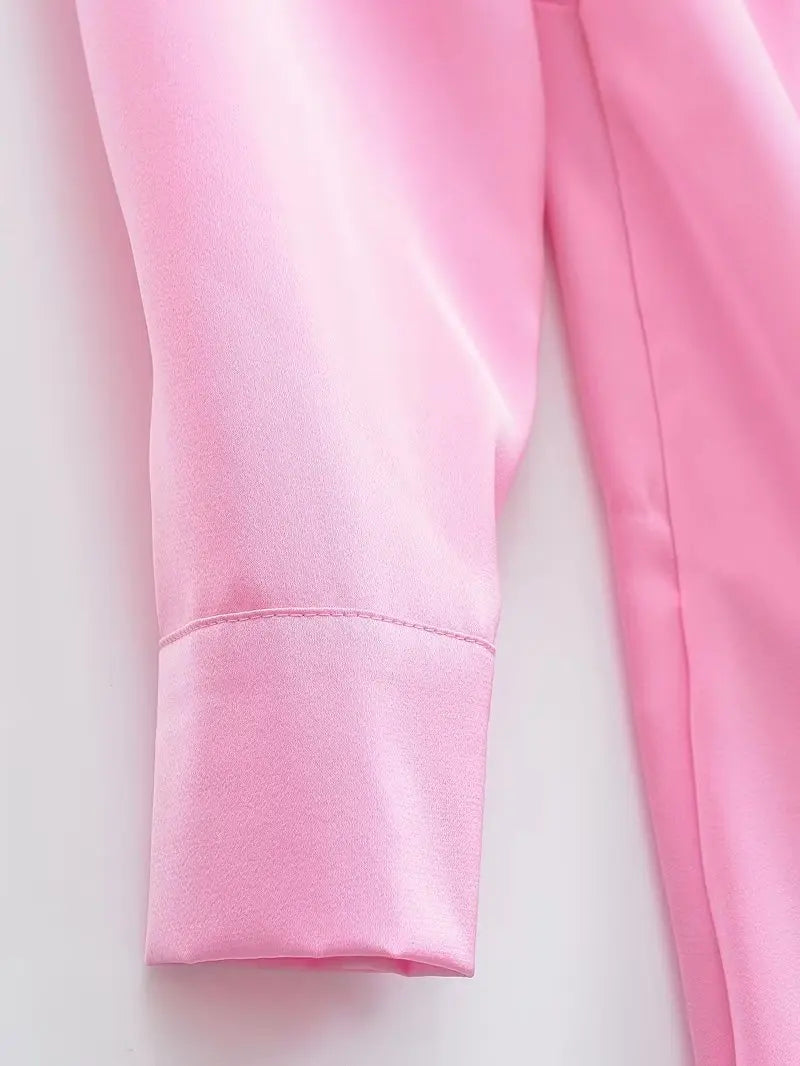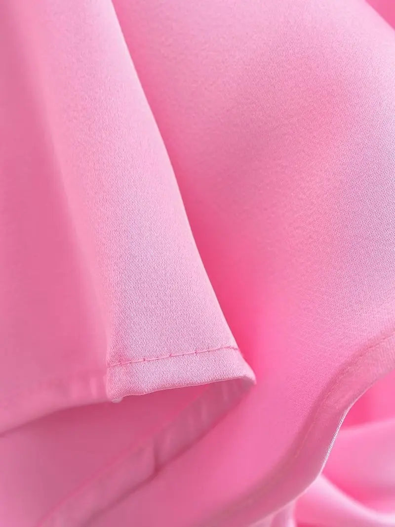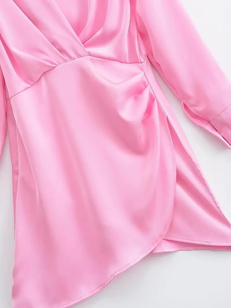 MQTIME - Women Long Sleeve Lapel Dress Solid Color Summer Fashion Streetwear Female Pleated Dresses Office Lady Elegant Shirt Dress