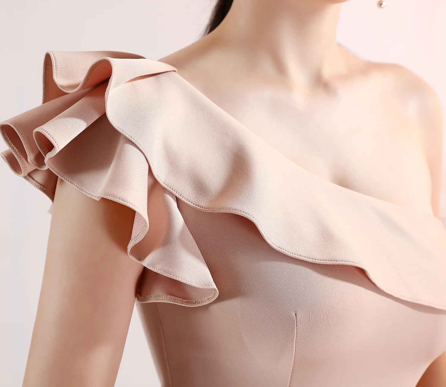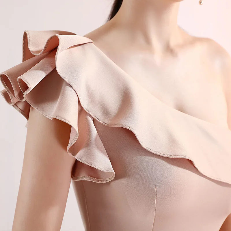 MQTIME - Women One Shoulder Evening Dress Solid Color Summer Ruffles Maxi Dresses Sexy Slash Neck Party Long Dress Elegant Streetwear