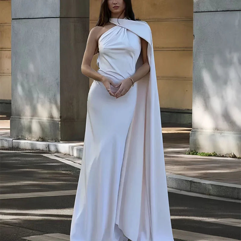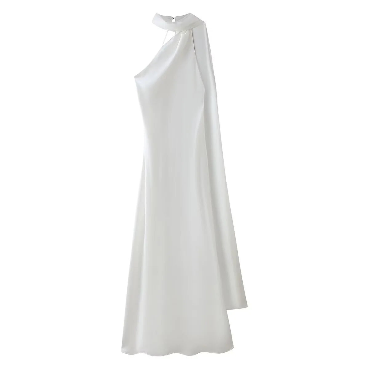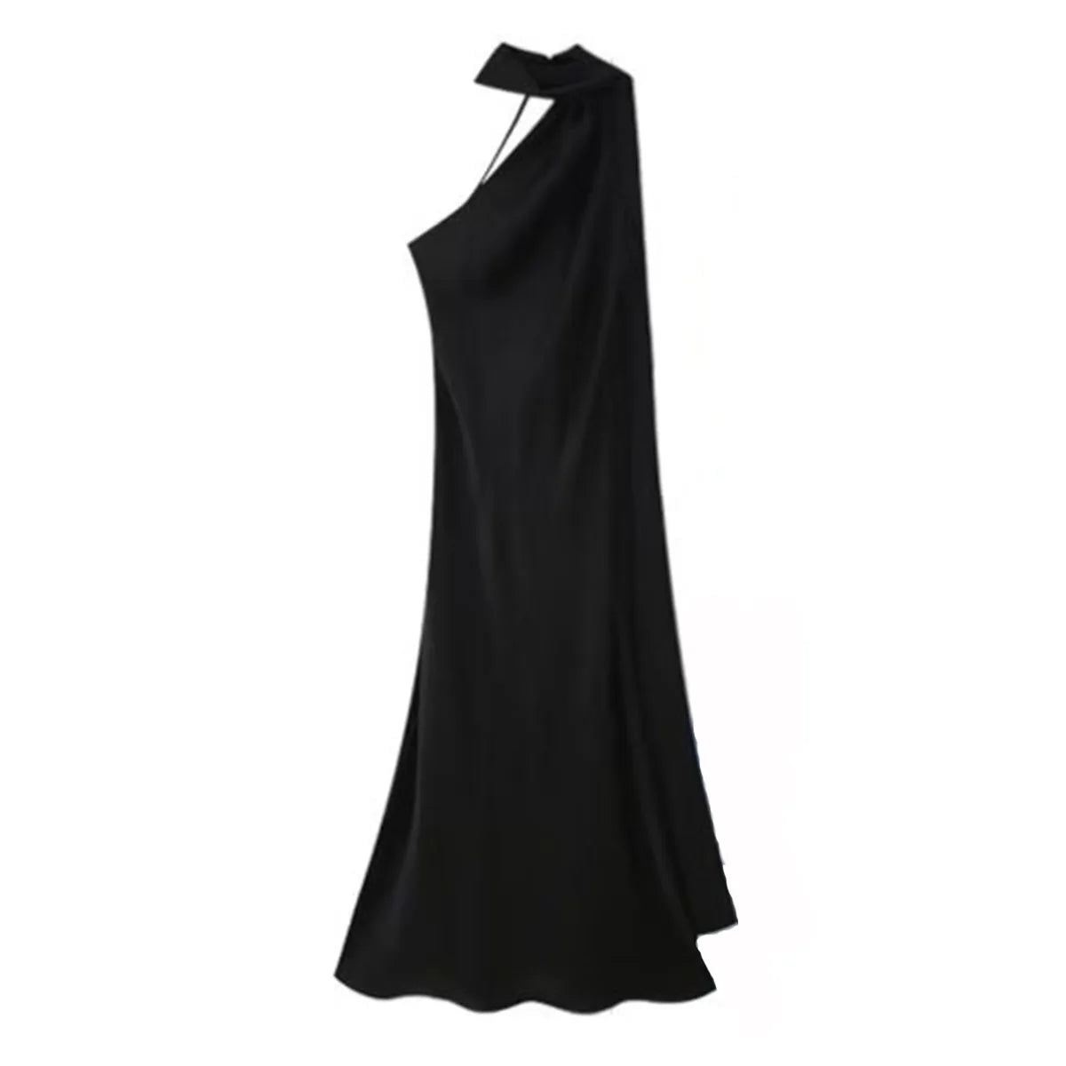 MQTIME - Women Ribbon Hanging Neck Long Dresses Solid Color Summer Sleeveless Backless Slim Halter Party Dress Female Elegant Satin Robe