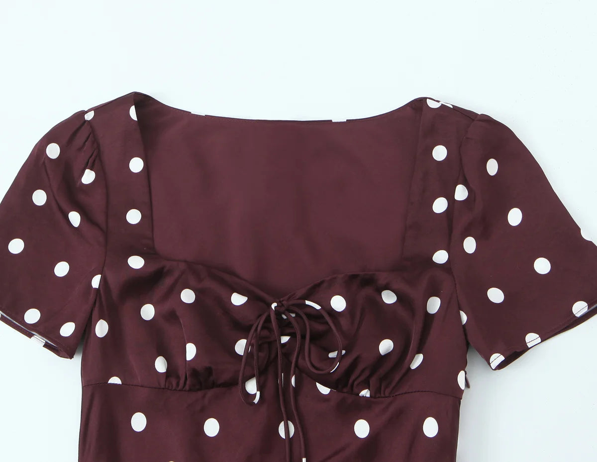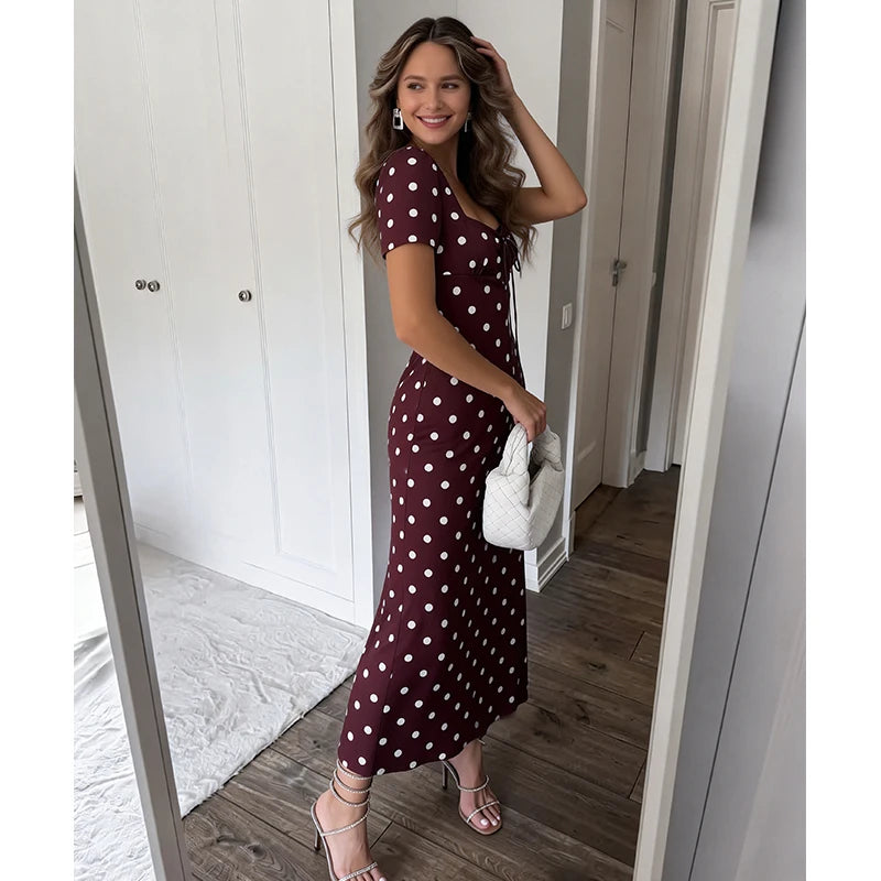 MQTIME - Women Sexy Dress Fashion Short Sleeves Bodycon Dresses Women Spring Summer Elegant Dot Print Party Long Dress