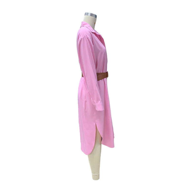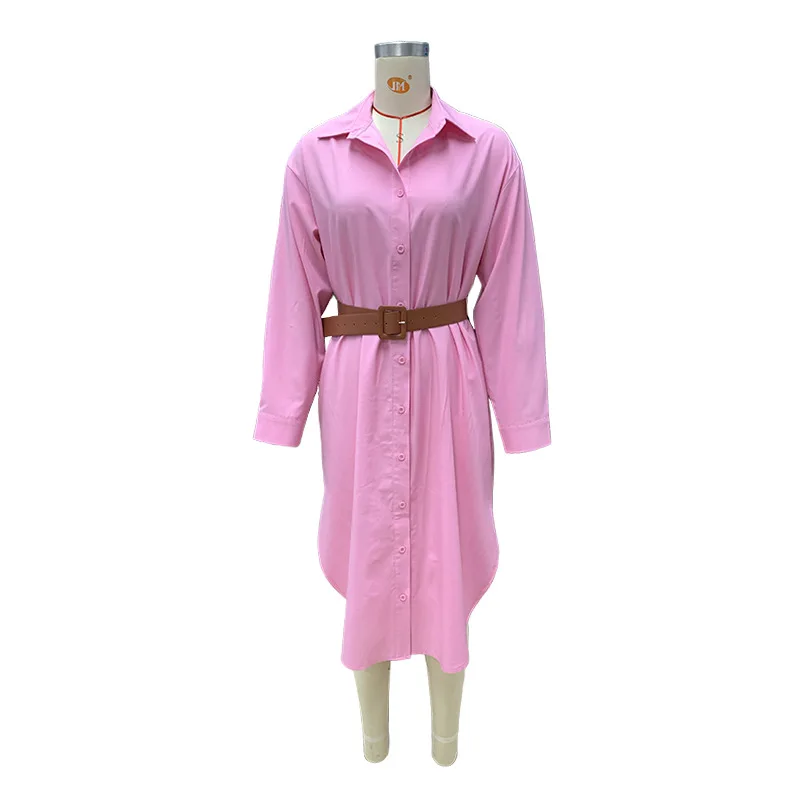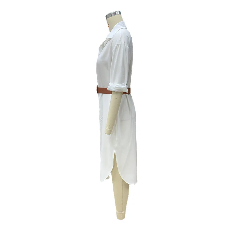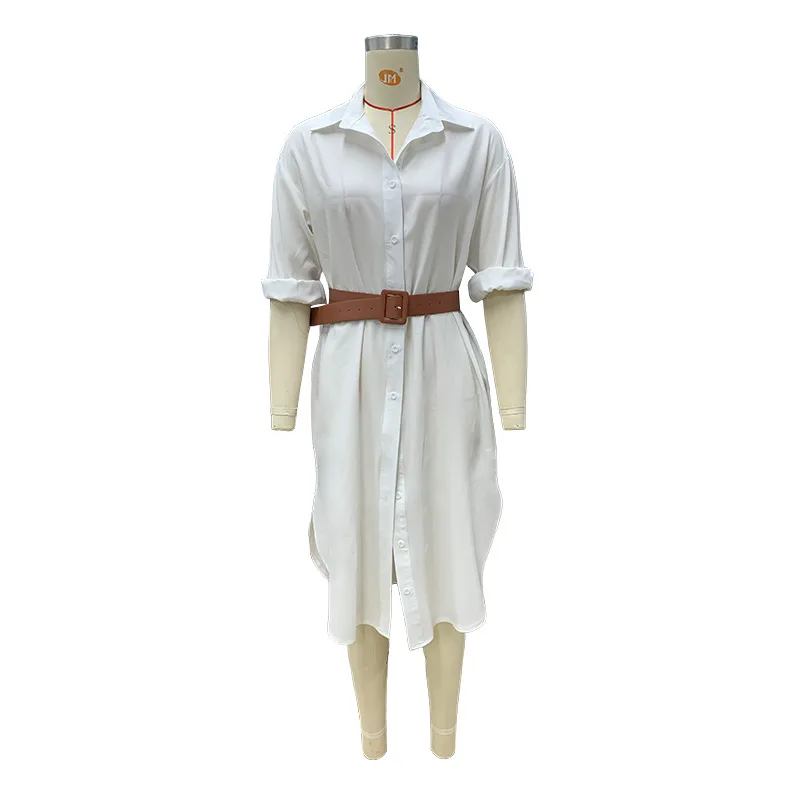 MQTIME - Women Simple Single-breasted Shirt Dress Fashion Long Sleeve Mid-Length Beach Summer Side Slit Sundress with Belt