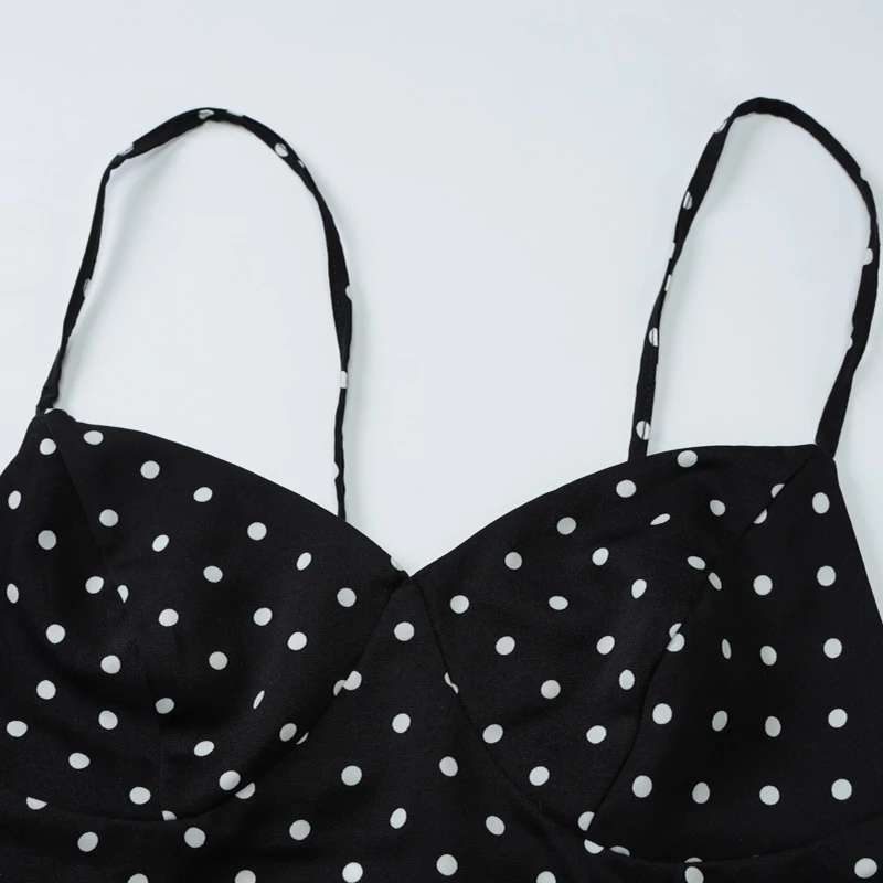 MQTIME - Women's French Style Polka Dot Printing Sexy V-neck Camisole Backless Loose Dress Sleeveless Summer Party Gowns