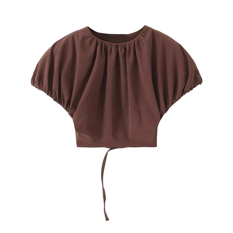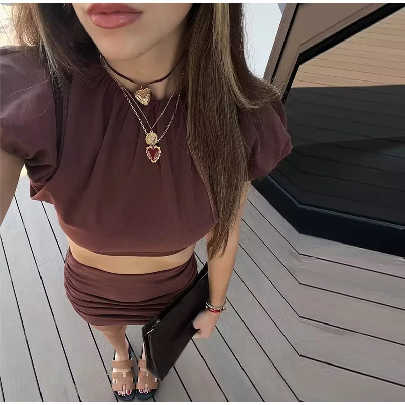 MQTIME - Women's Mini Dress Two Piece Set O-neck Short Puff Cropped Top High Waist Hip Package Pleated Female Sets Elegant Lady Outfits