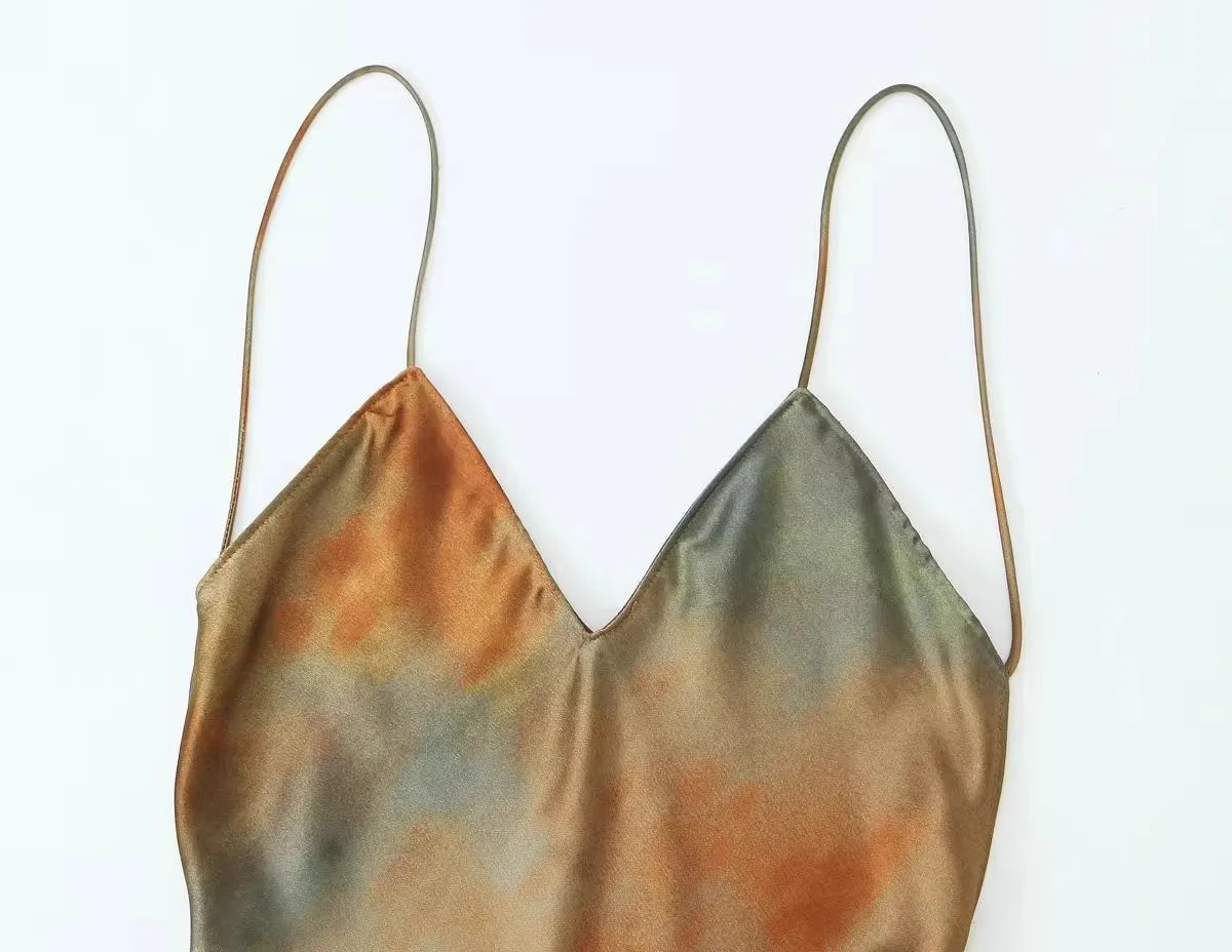 MQTIME - women's retro elegant satin V-neck backless sexy camisole dress female fashion slim sleeveless long skirt summer new