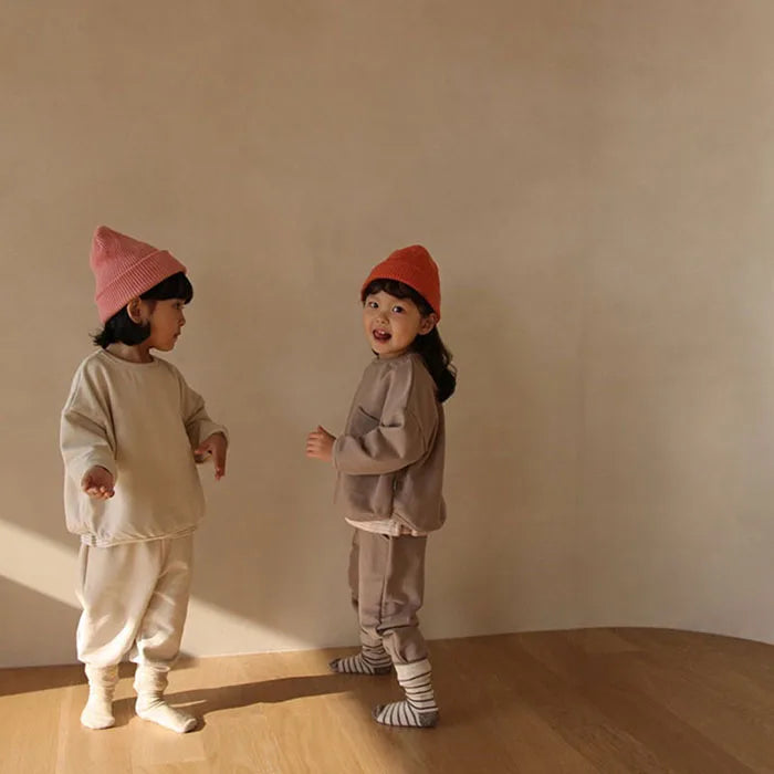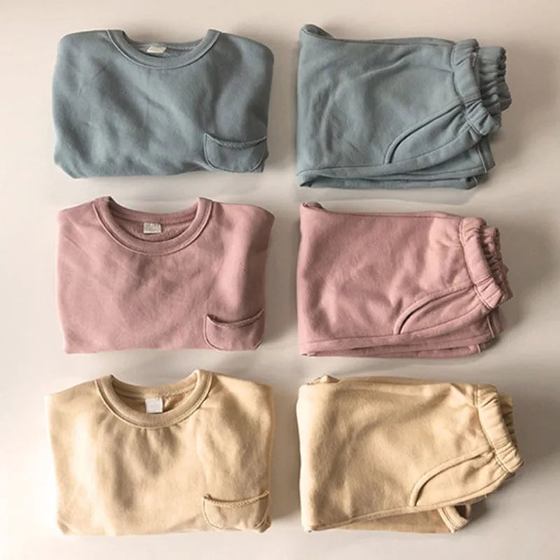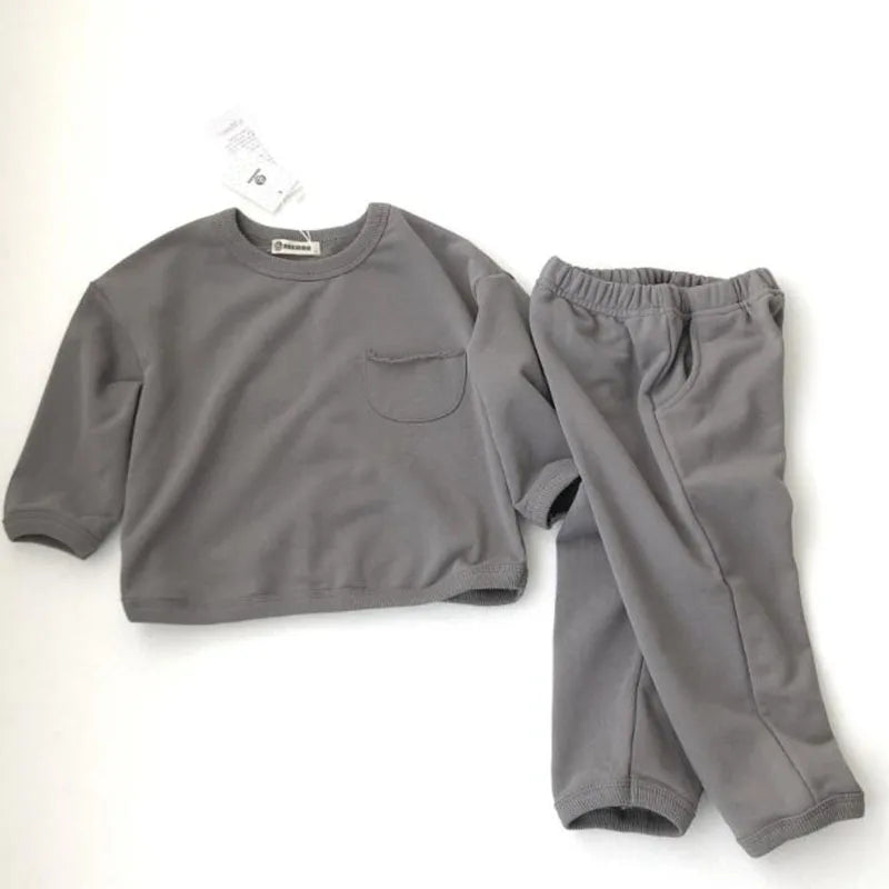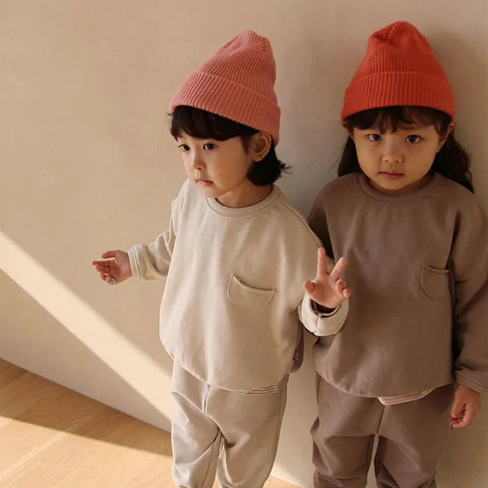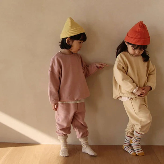 MQTIME - Korean Style 2-6Yrs Children Clothing Suit Long Sleeve Cotton Solid T-shirt+Pants Spring Autumn Baby Boys Girls Clothes Set