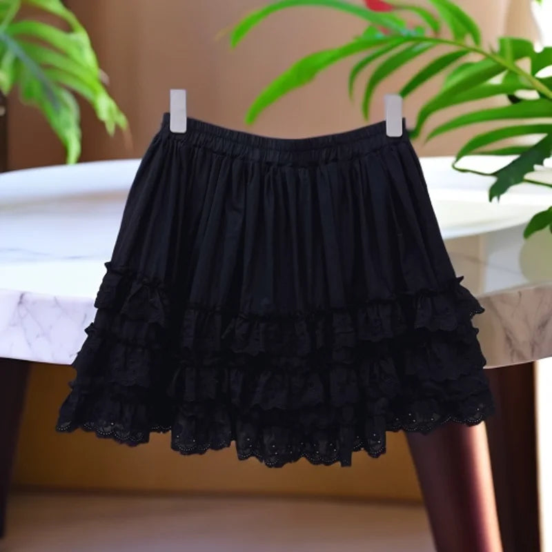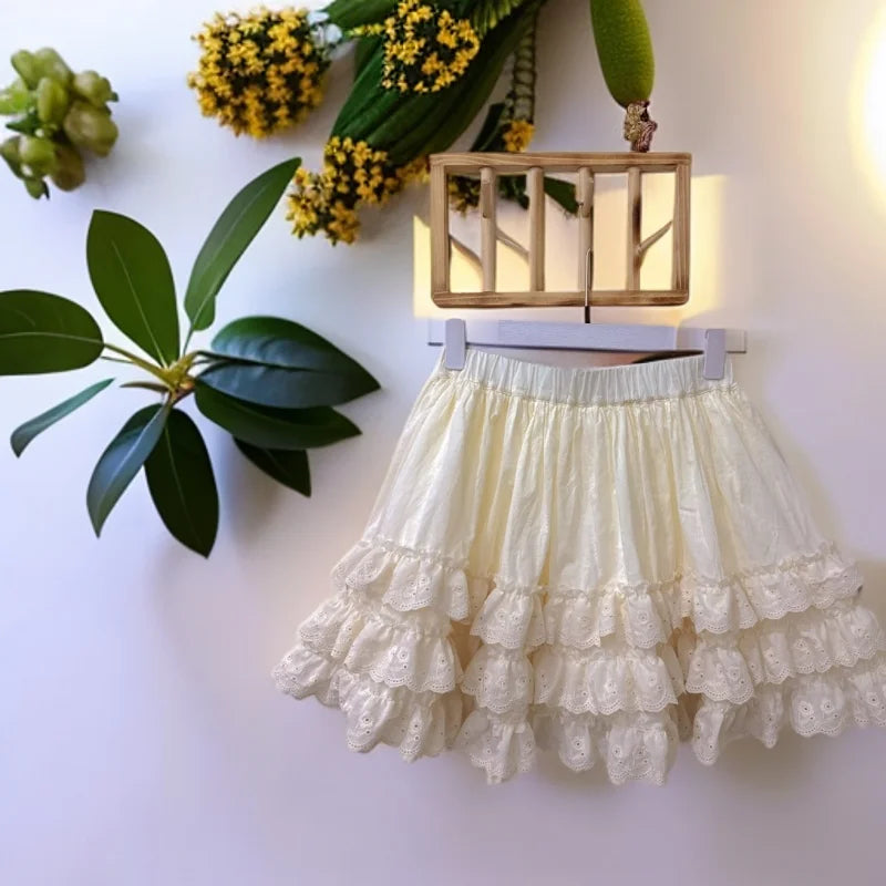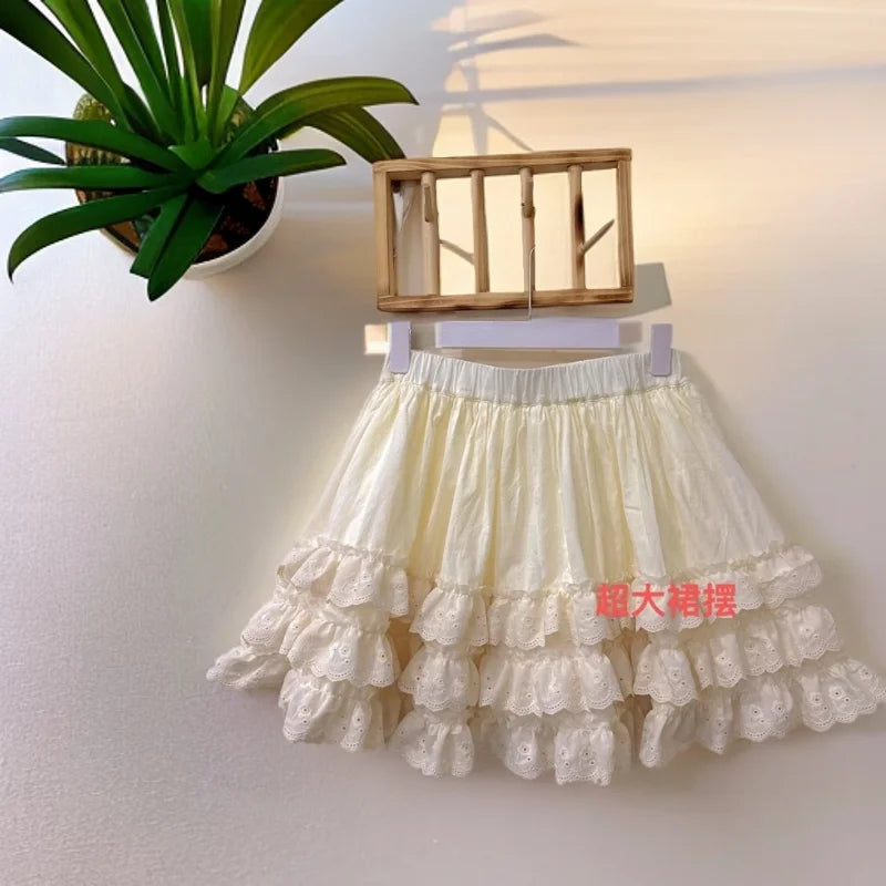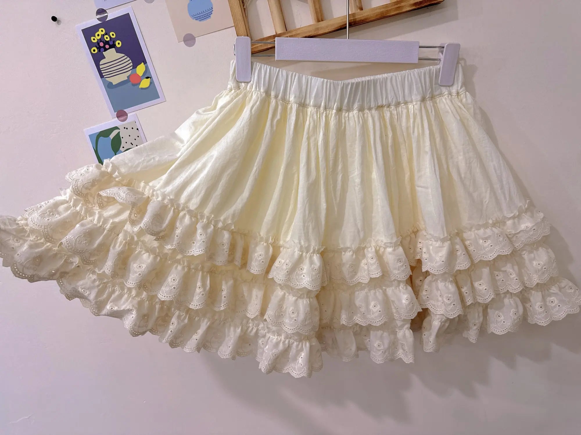 MQTIME - Forest style fresh and cute elastic waist lace trim cake dress white skirt kawaii micro skirt Y2K skirt