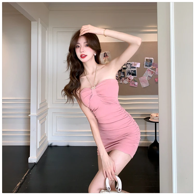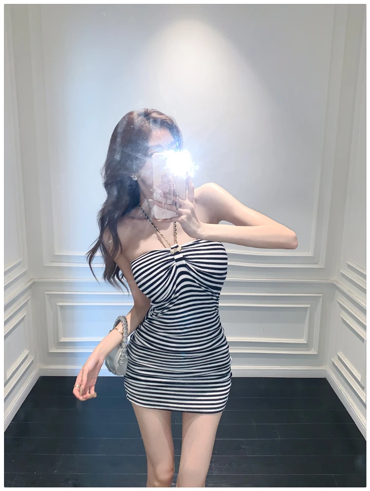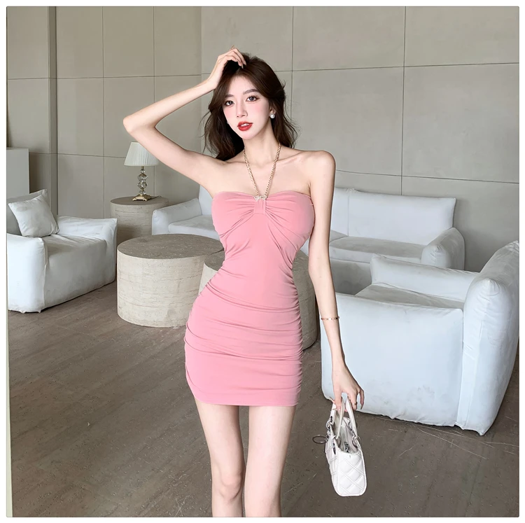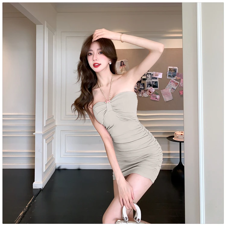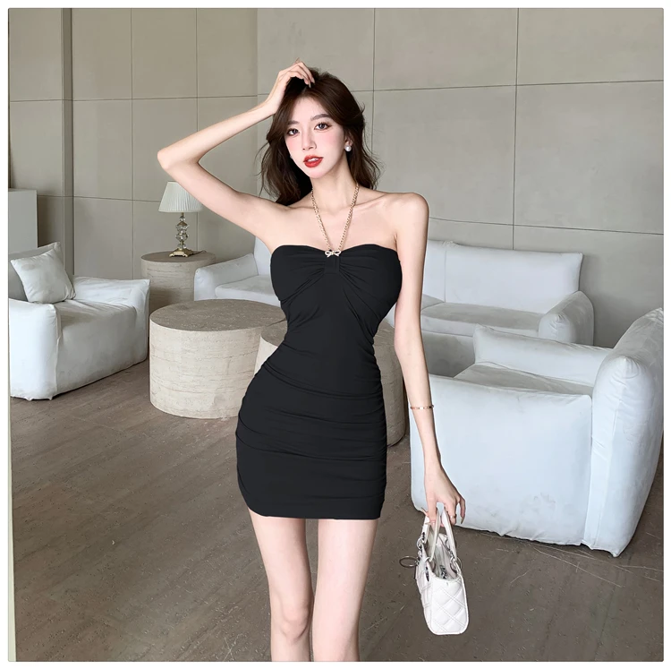 MQTIME - 2024 Summer New Pure Desire Sexy Spicy Girl Bra Hanging Neck Dress Women's Design Sense Slim Fit Wrap Hip Short Skirt