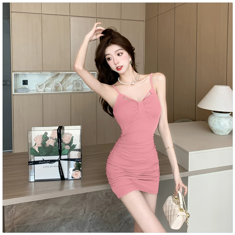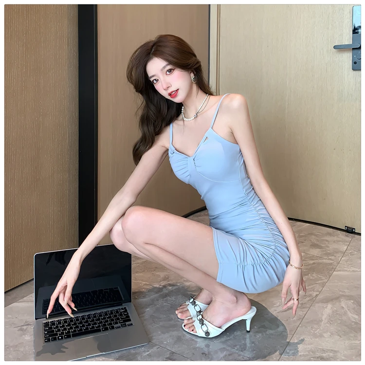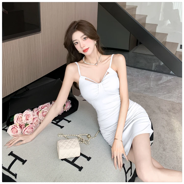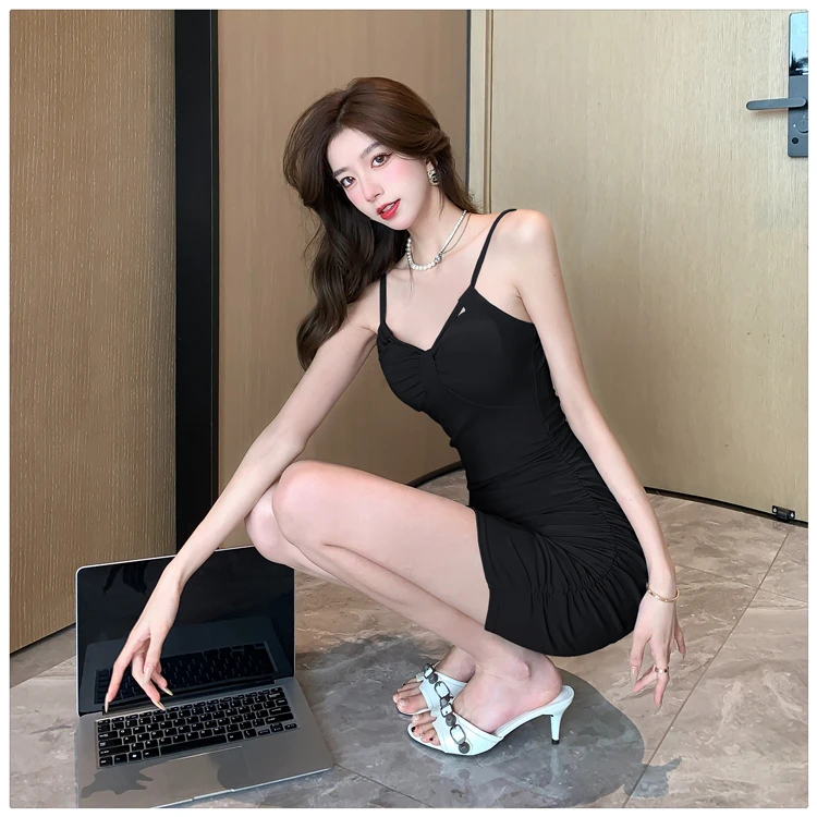 MQTIME - 2024 Summer New Strap Hanging Dress Sexy Spicy Girl Pure Desire Short Skirt with Slim Fit and High end Feeling Wrapped Hip