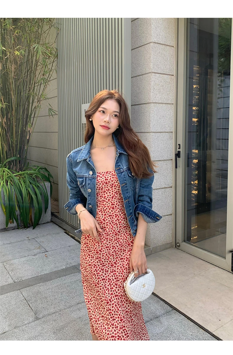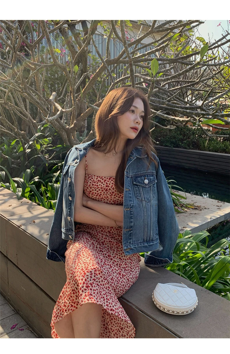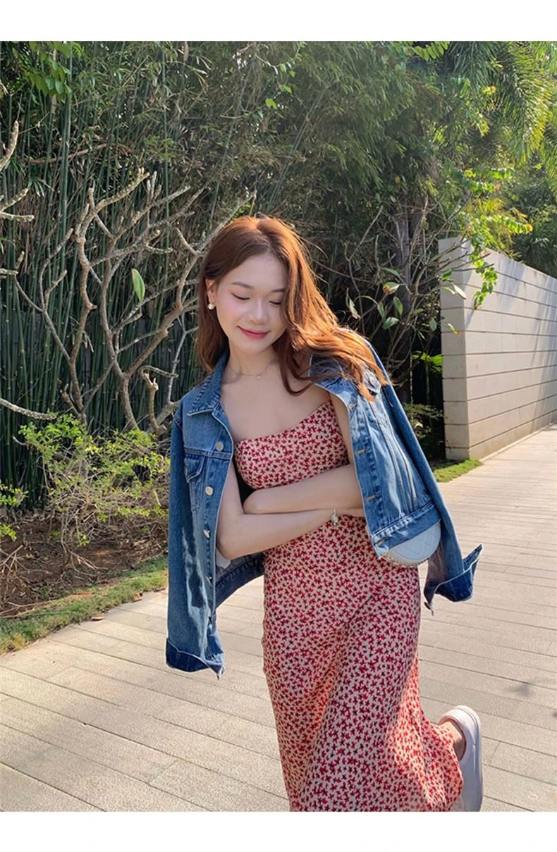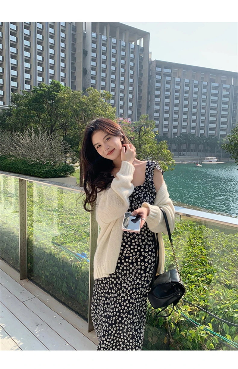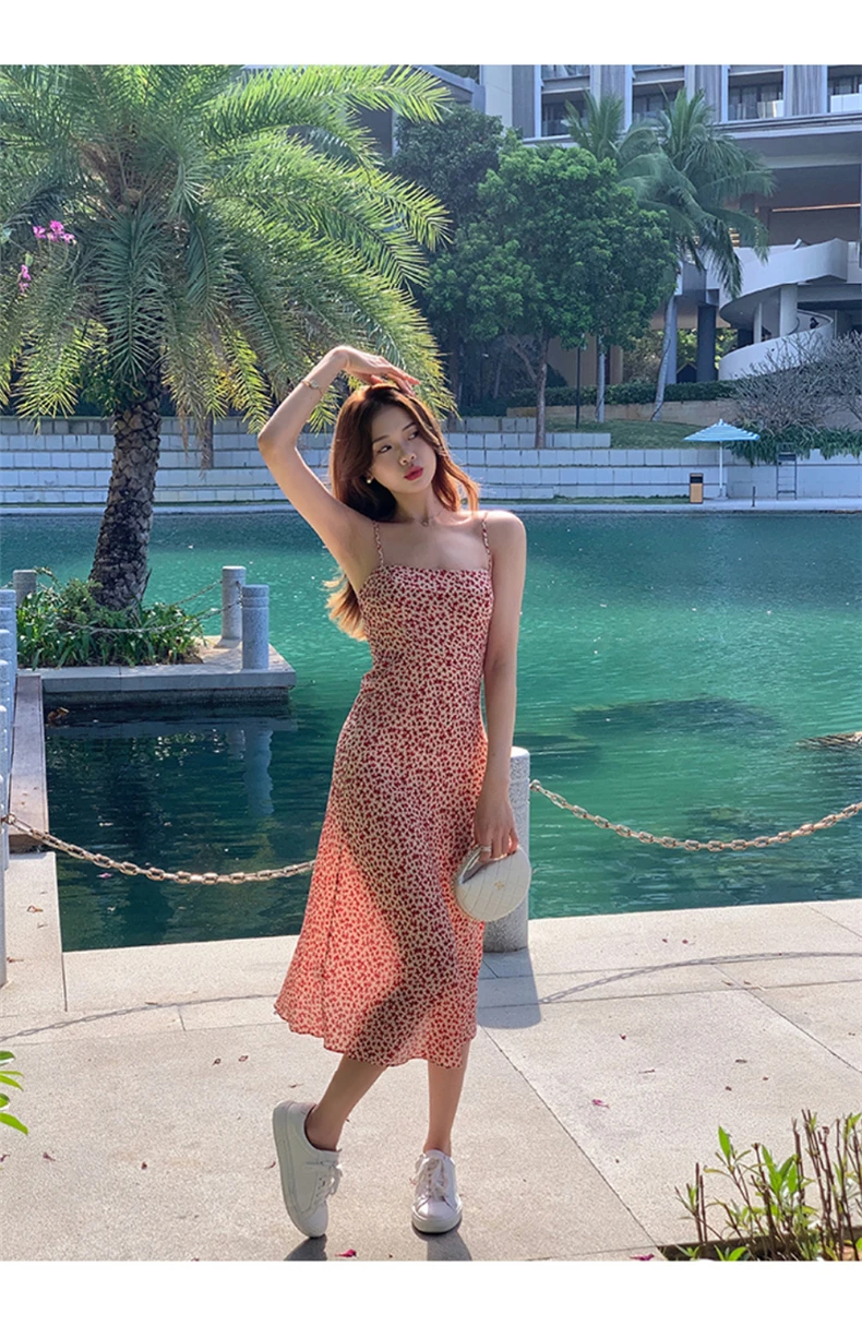 MQTIME - Black floral small flying sleeve suspender dress summer new sexy temperament with waist and buttocks, spicy girl long dress