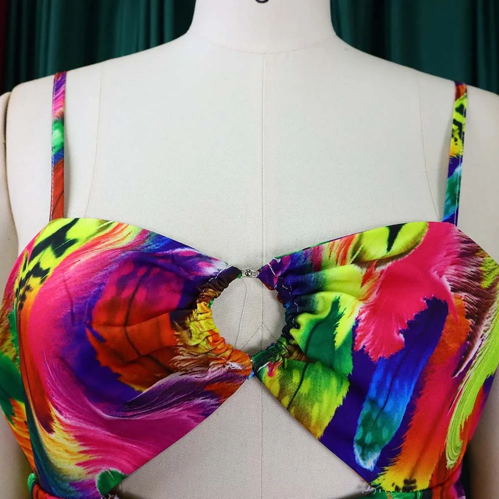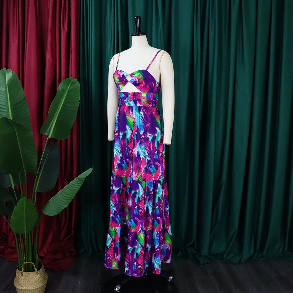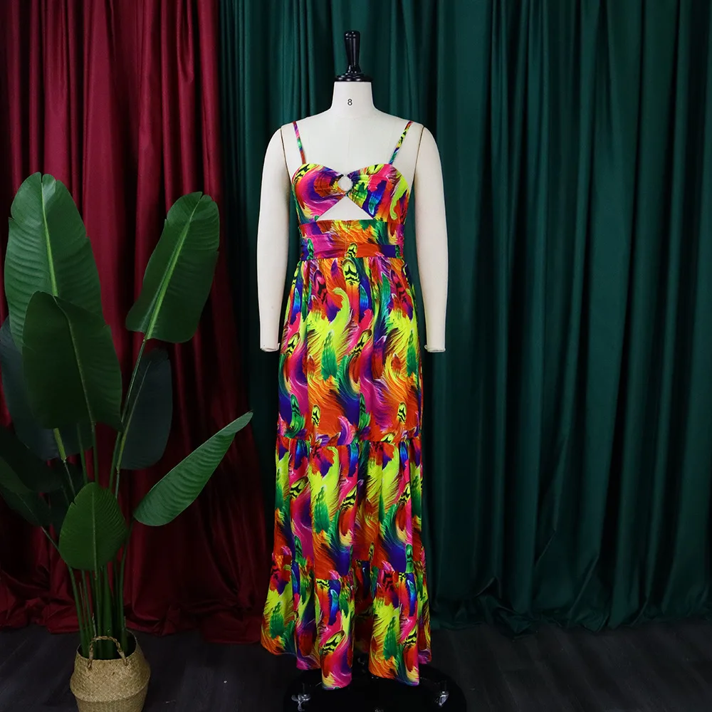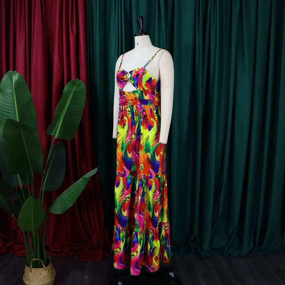 Mqtime Elegant Sling Plus Size Dress Sexy Printing Fashion Backless Boho Beach Mixi Dress Robe Femme Ete Leisure Vacation Vestidos