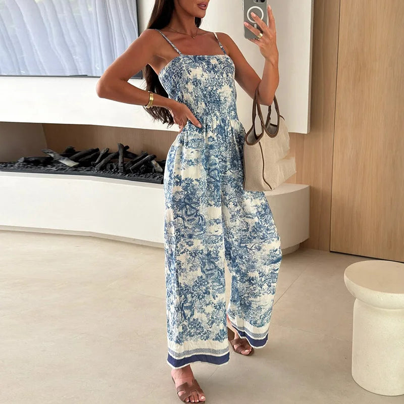 MQTIME - Spring Summer Hollow Out Sling Jumpsuit Women Fashion Floral Print Wide Leg Playsuit Romper Sexy Sleeveless Office Overalls