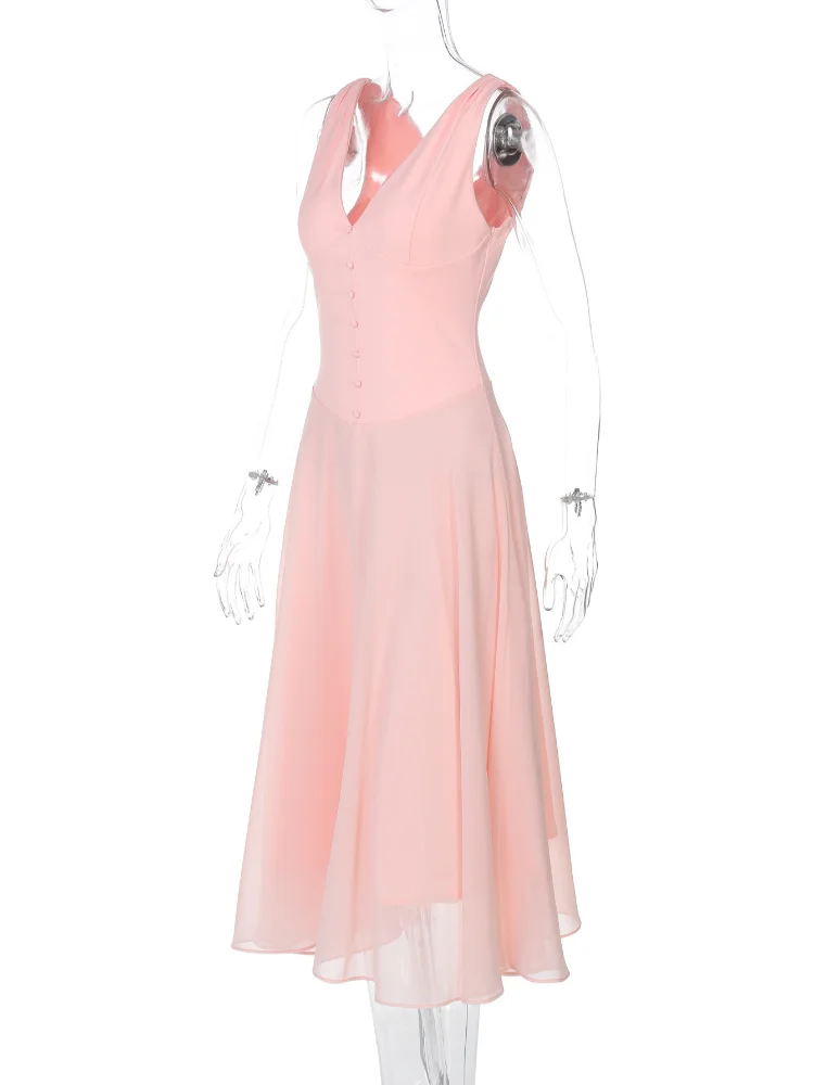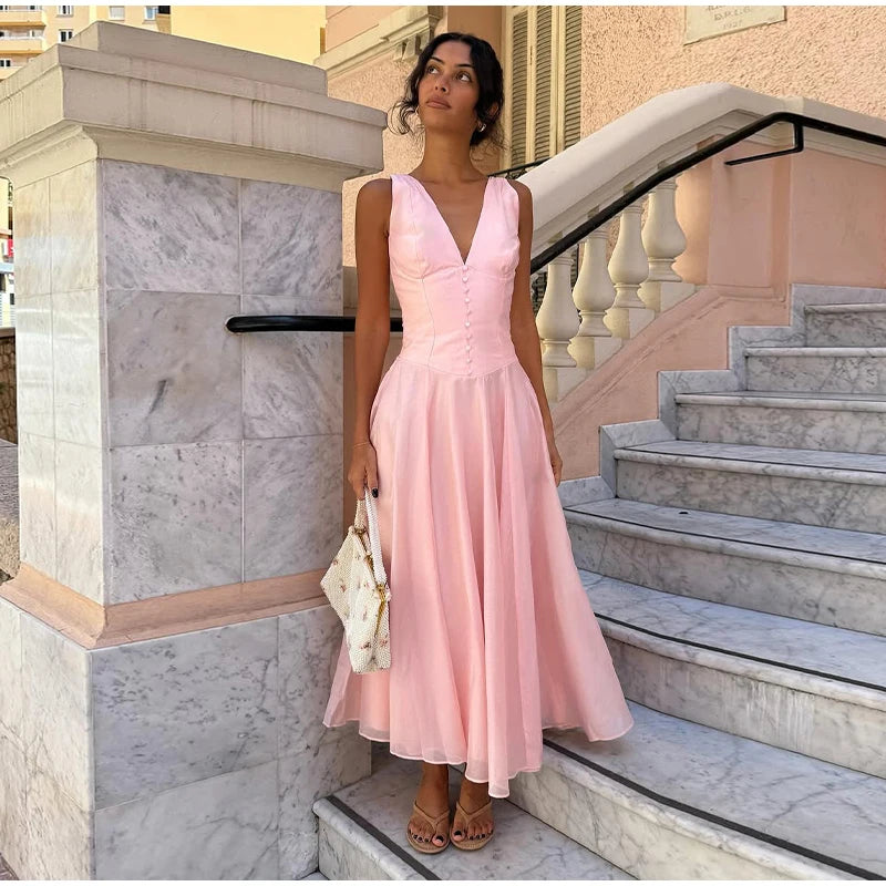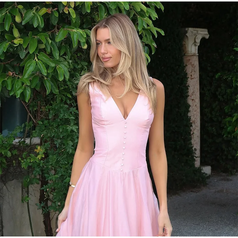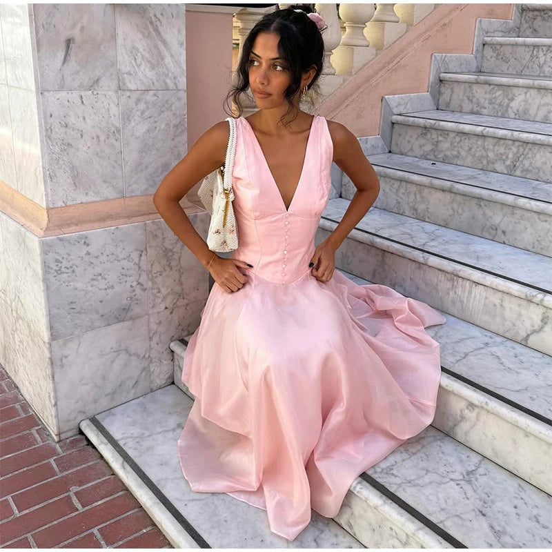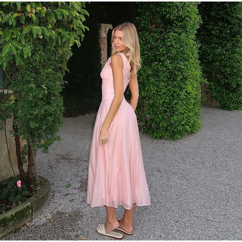 MQTIME - Elegant Dresses Date Modest Sweet Romantic V-neck Summer Charming French Stylish Feminine Trendy Women Party Evening Gown
