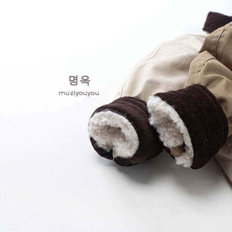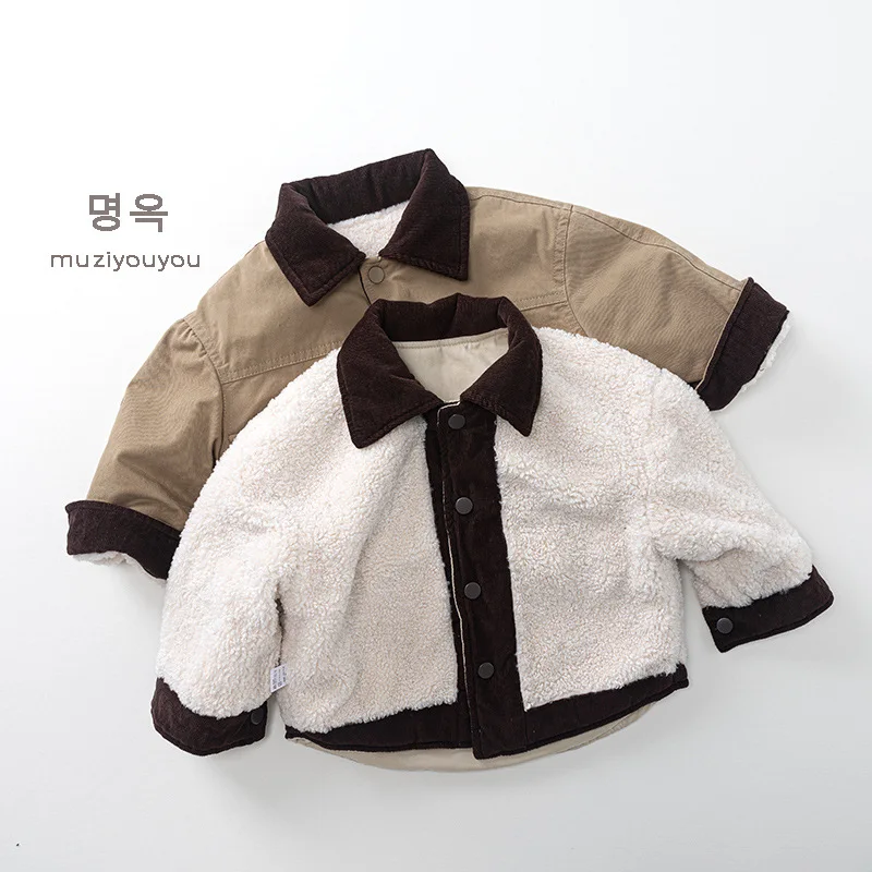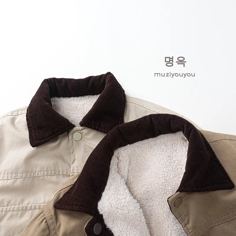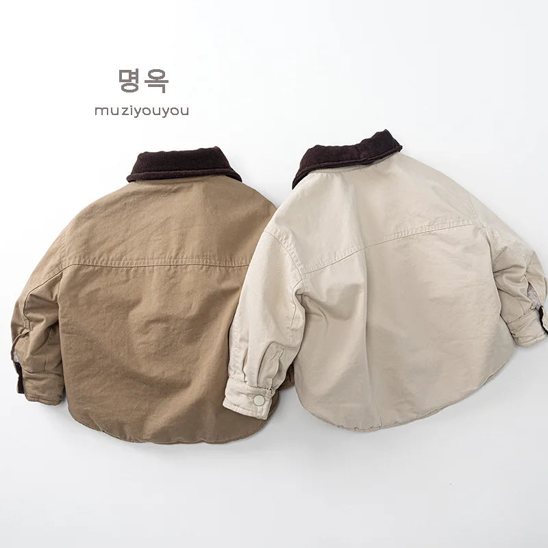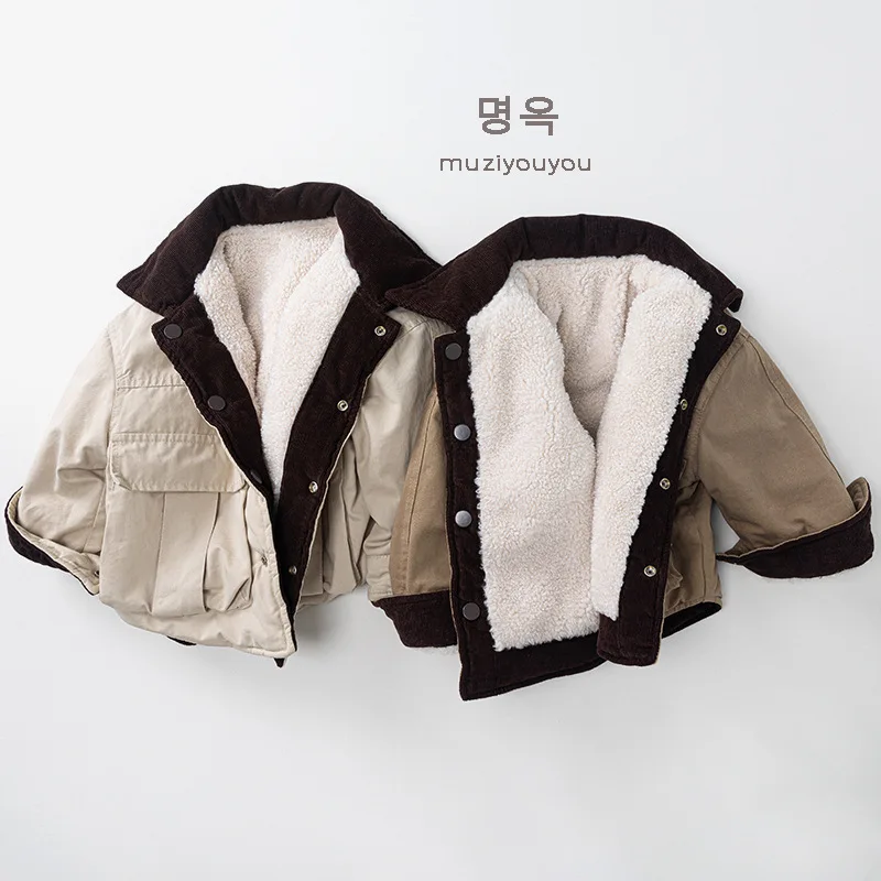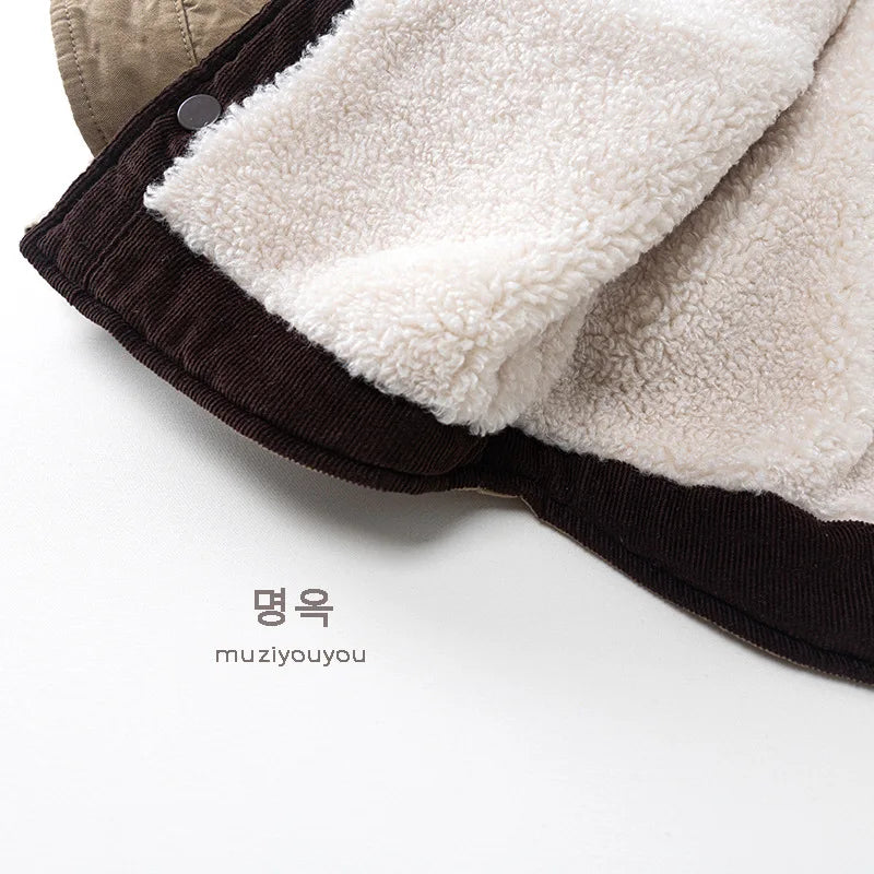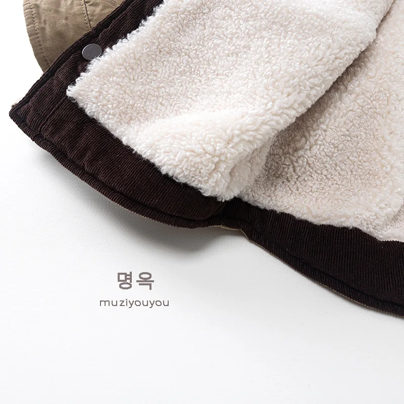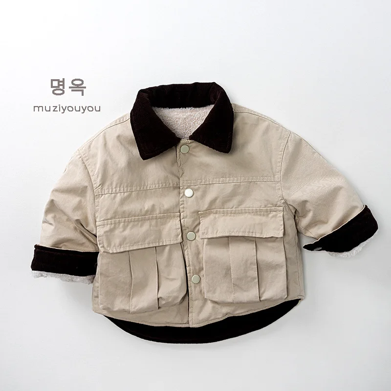 MQTIME - Winter New Children Plus Velvet Thick Coat Boys Girls Lapel Cotton Padded Jacket Baby Casual Shirts Jacket Kids Clothes