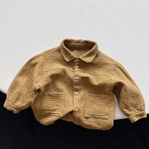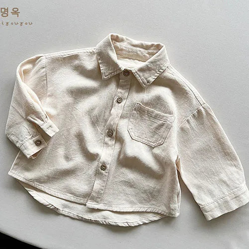 MQTIME - Kids Cardigan Coat Cotton Long Sleeve Solid Color Shirt Korean Japan Style Spring Autumn Baby Girls Boys Casual Loose Shirt