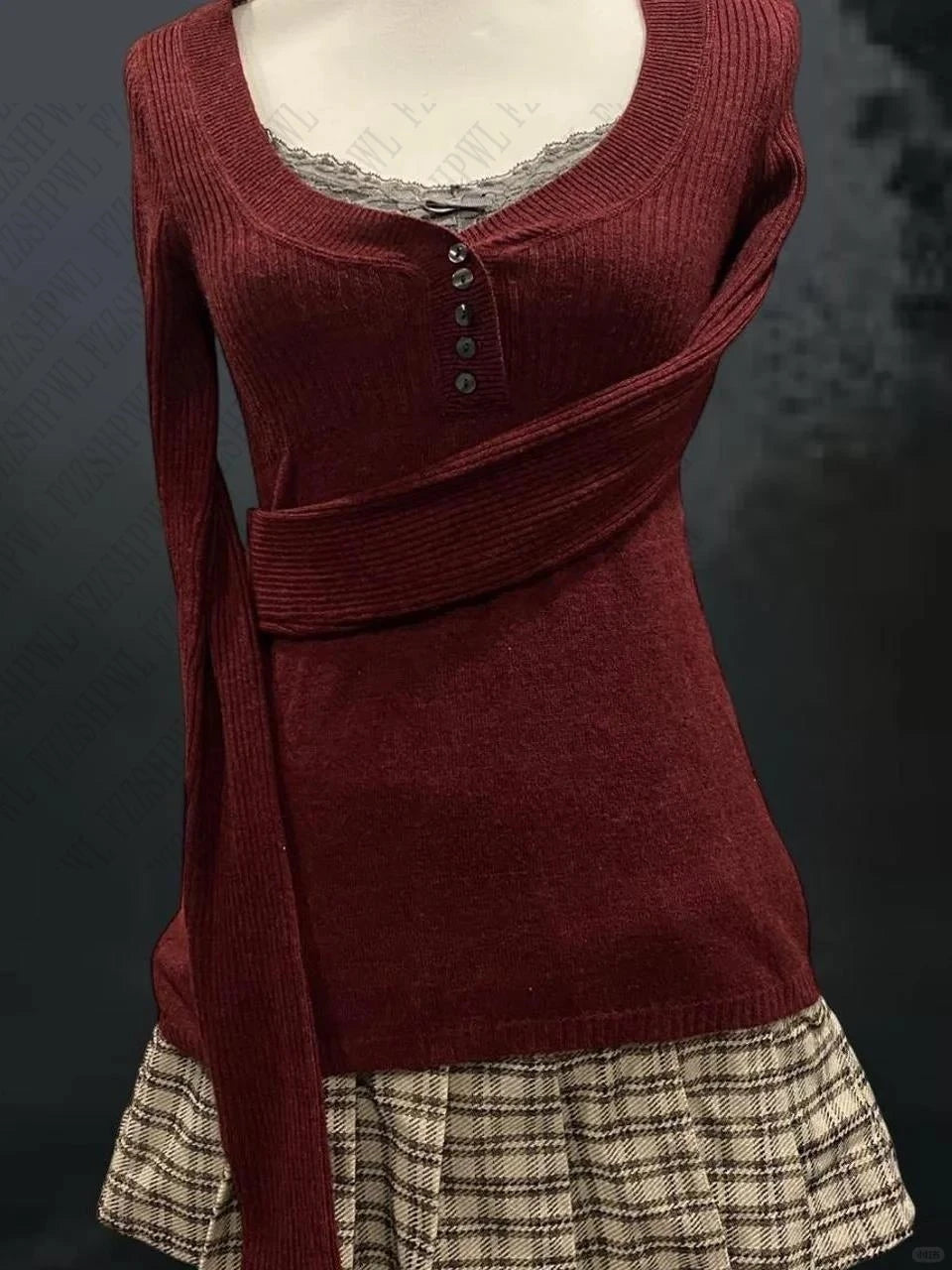 MQTIME - Vintage Subculture Sweater Chic Fashion Y2K Woman Gothic Aesthetic Knitwear Punk Clothing Harajuku 90s Tide emo Classic Pullover