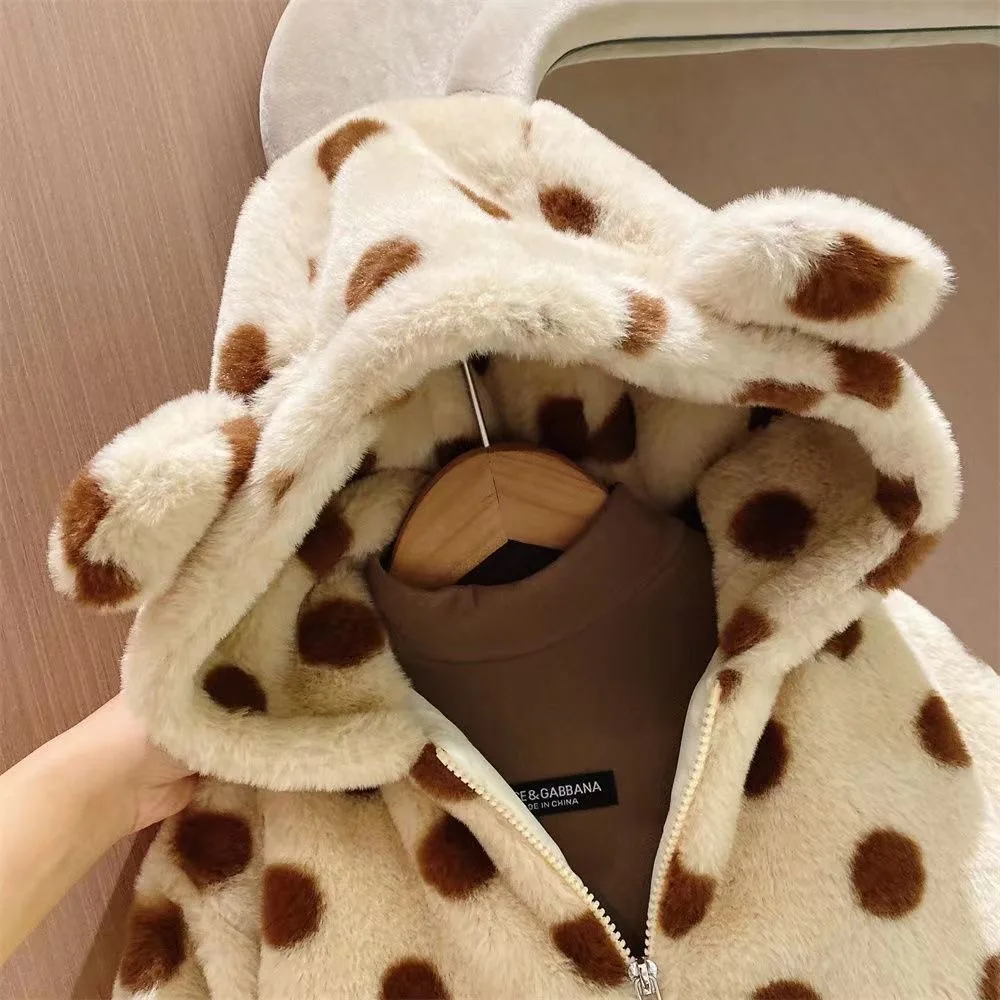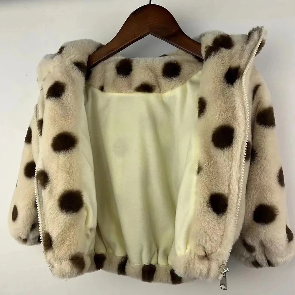 MQTIME - Baby Girls Jackets Children Winter Warm Faux Fur Coats Kids Fluffy Hooded Outwear New Toddler Plush Casual Clothing 2-8 Years