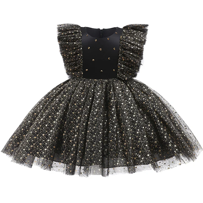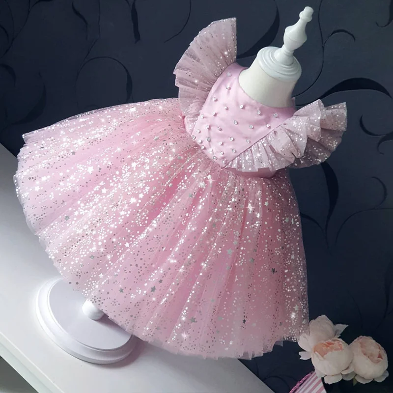 MQTIME - Baby Girls Tulle Dresses Big Bow Children Birthday Party Mesh Gown Kids Princess Printed Sequin Vestidos Infant Sweet Clothes