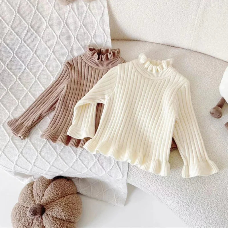 MQTIME - Girls Ruffled Sweater Baby Kids Autumn Knit Jumper Children Winter Fashion Pullover 2025 New Toddler Casual Warm Coats 1-6Y