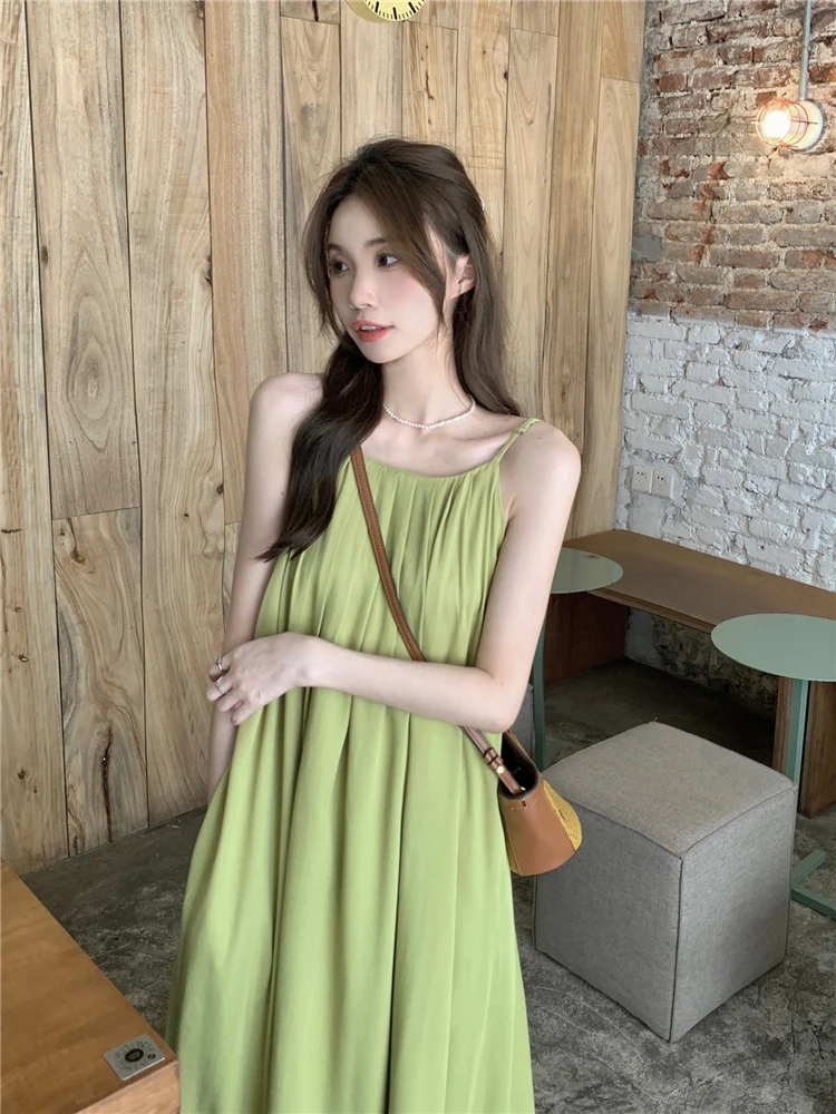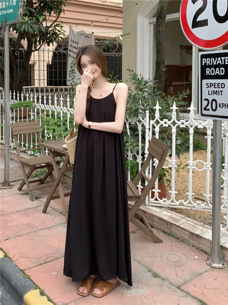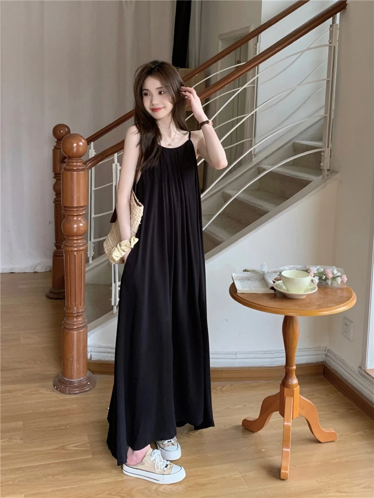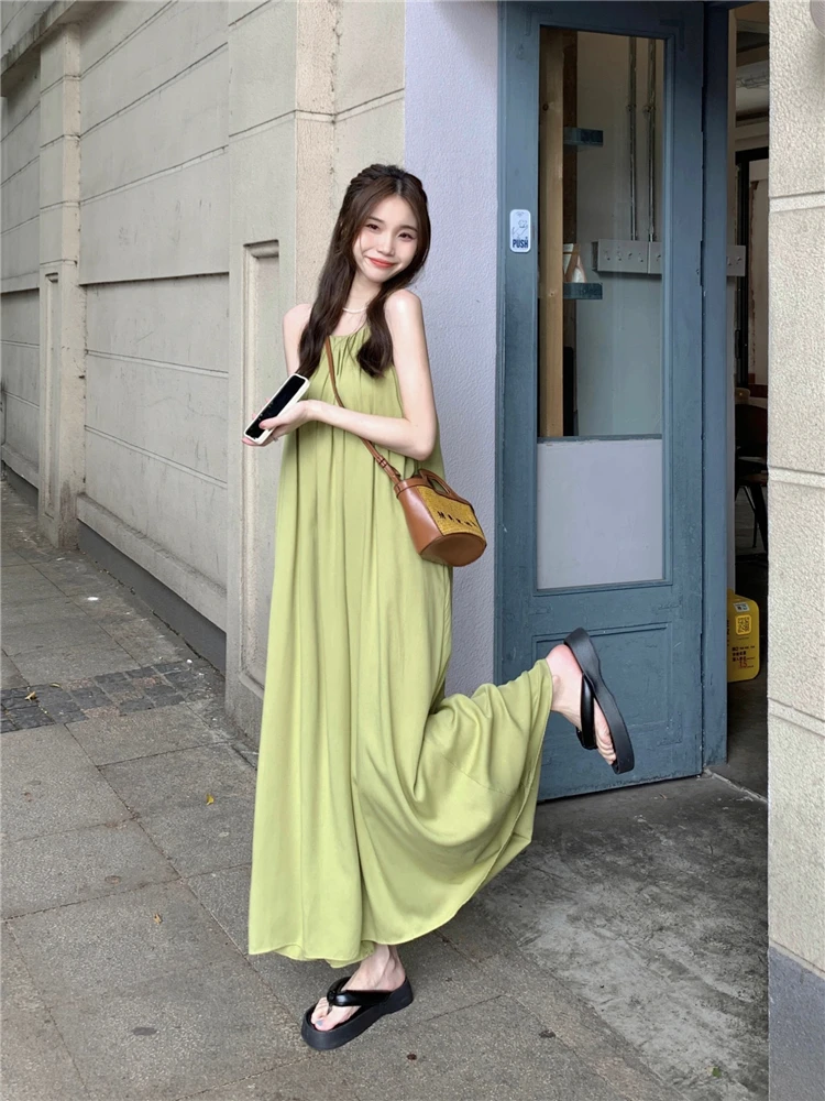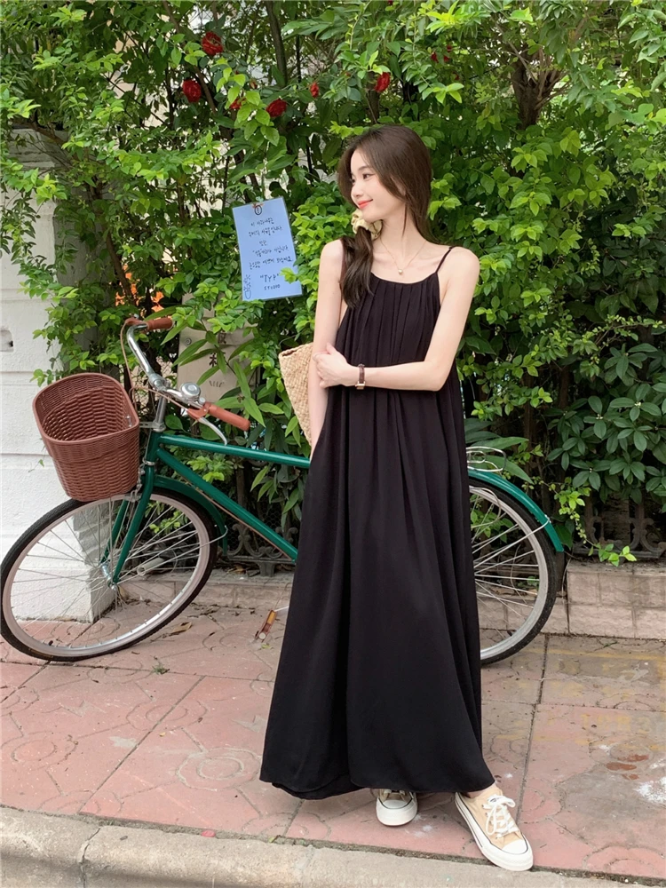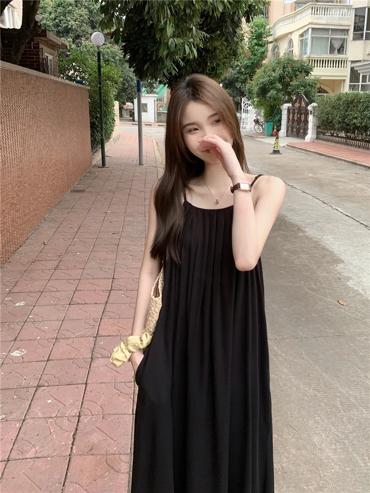 MQTIME - Elegant and versatile dress for women's summer 2024 new seaside vacation style beach skirt pleated suspender long skirt