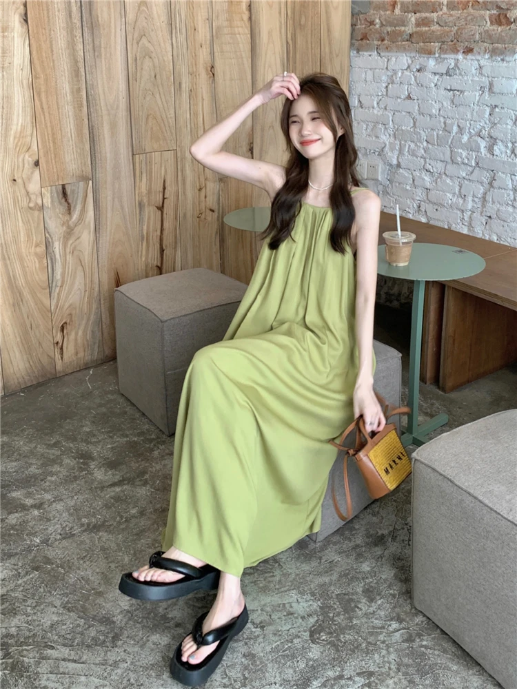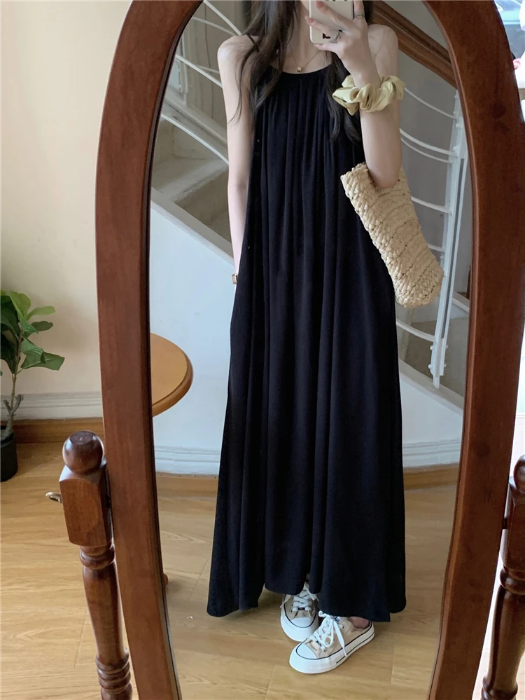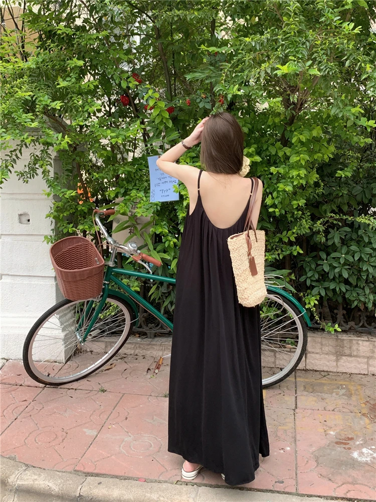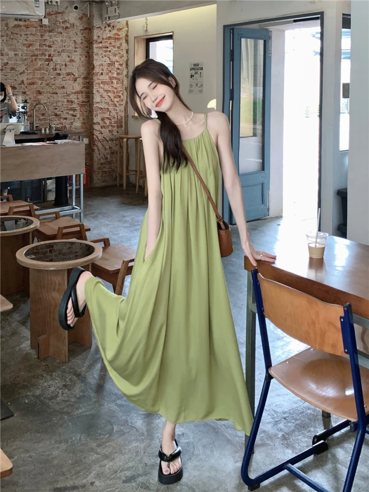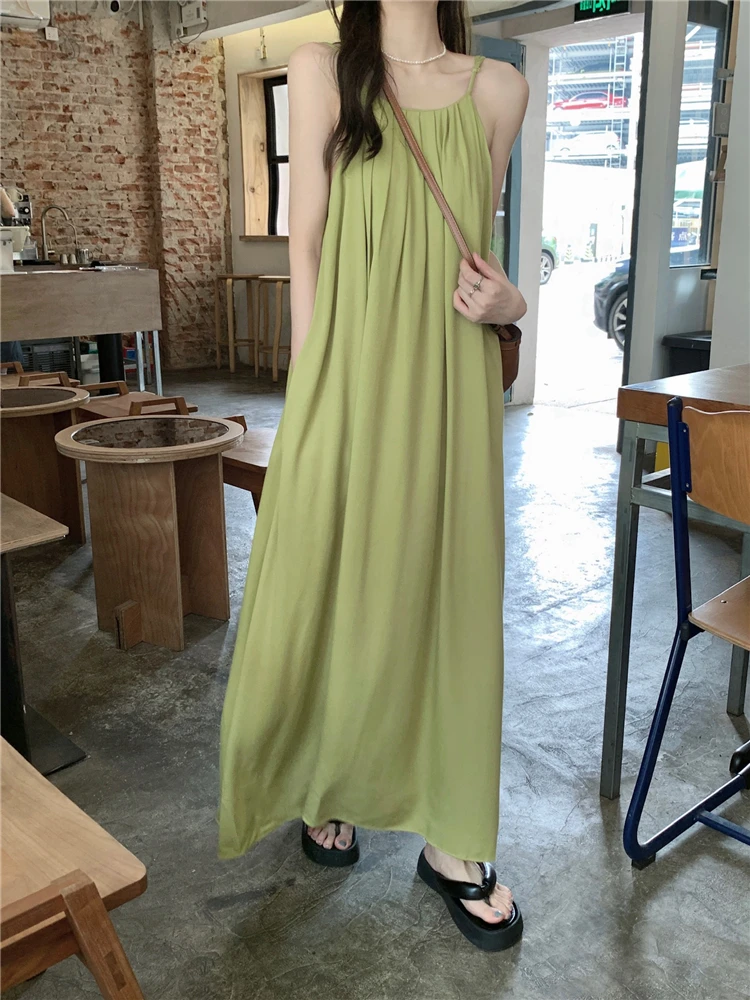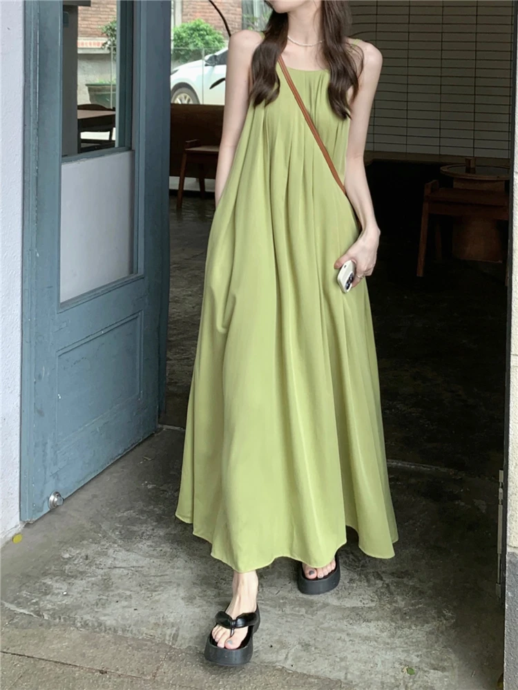 MQTIME - Elegant and versatile dress for women's summer 2024 new seaside vacation style beach skirt pleated suspender long skirt
