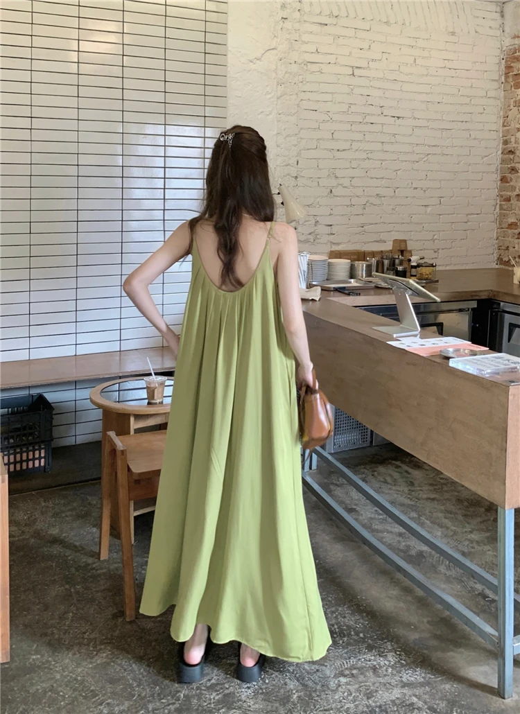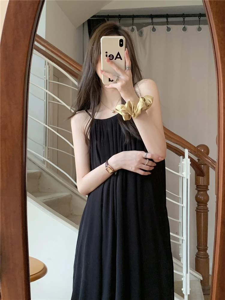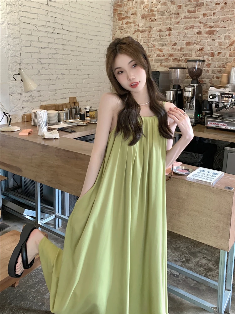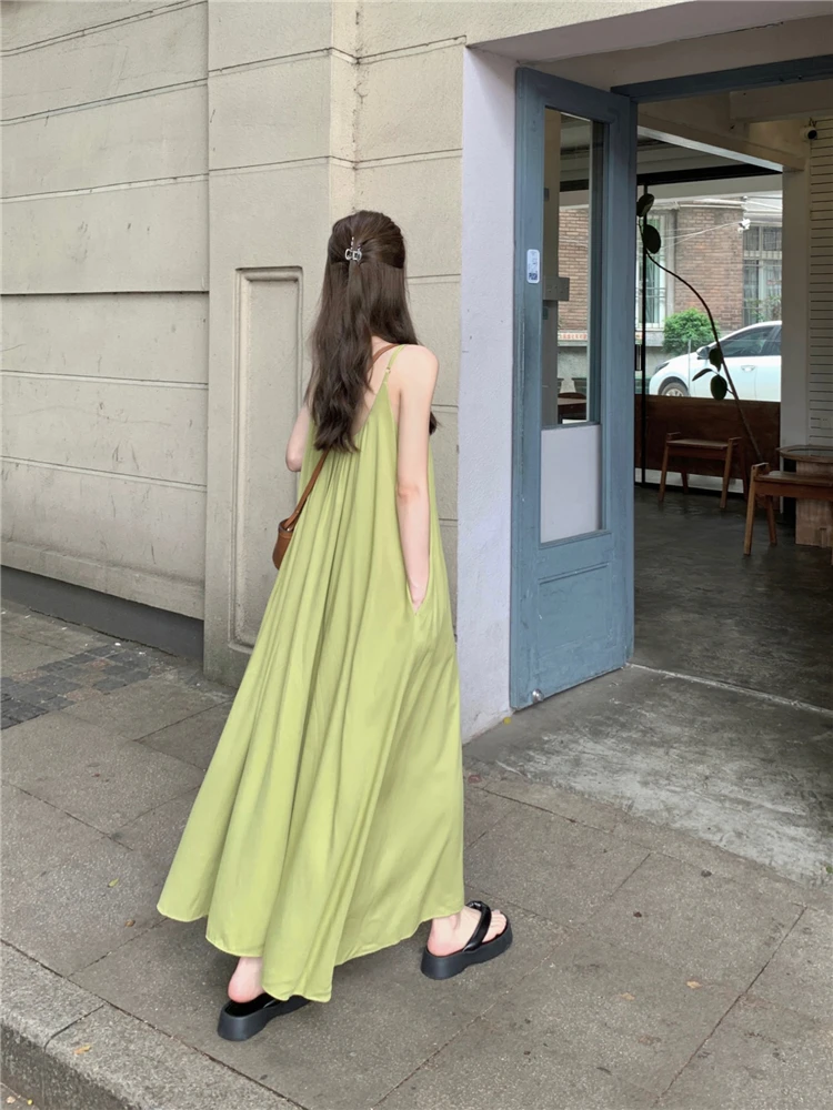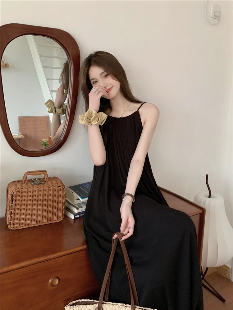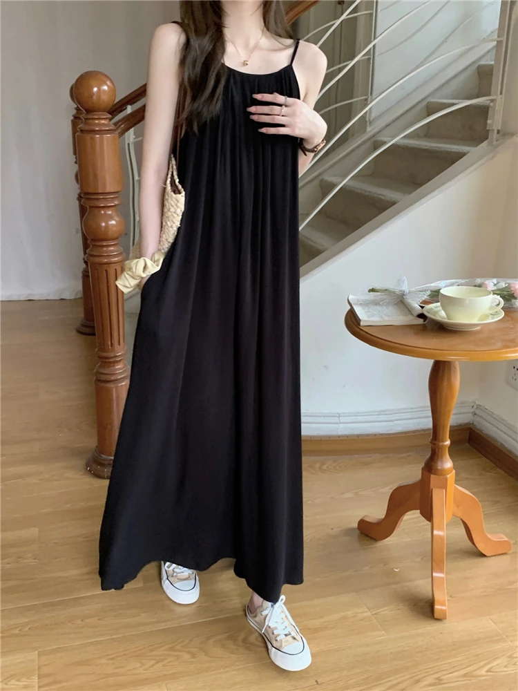 MQTIME - Elegant and versatile dress for women's summer 2024 new seaside vacation style beach skirt pleated suspender long skirt
