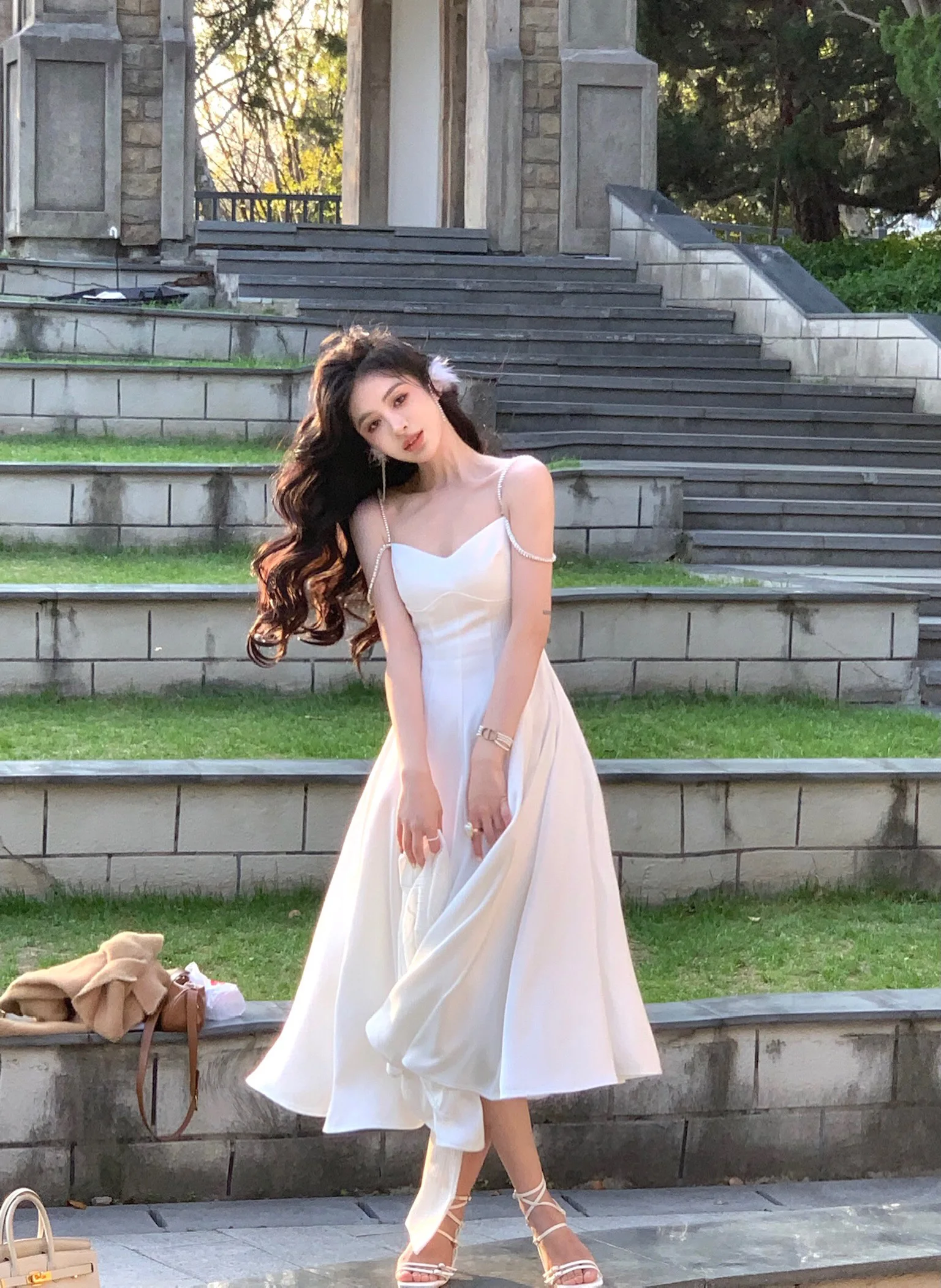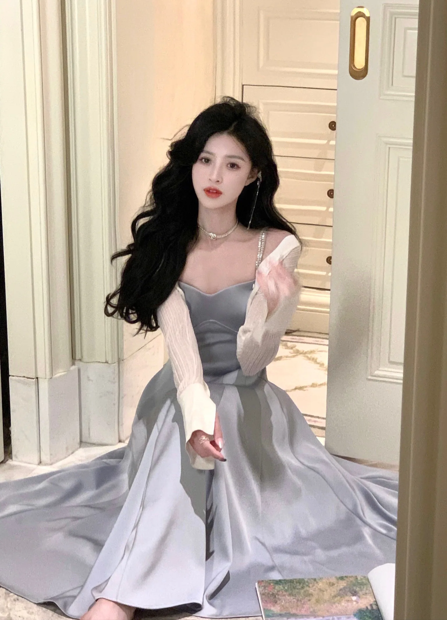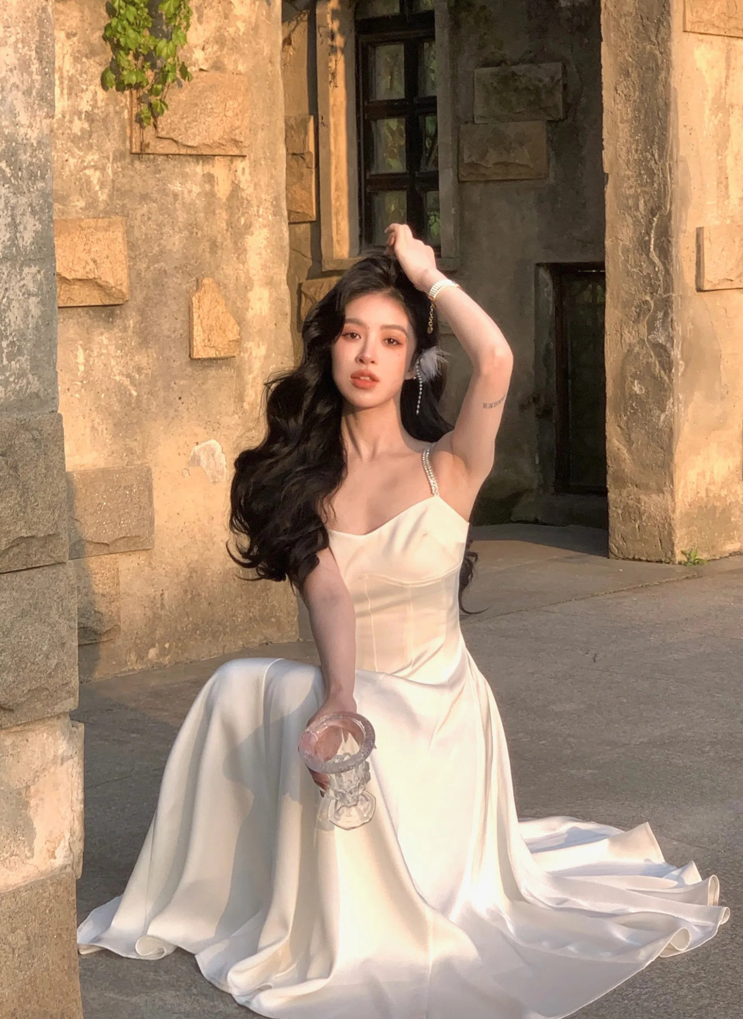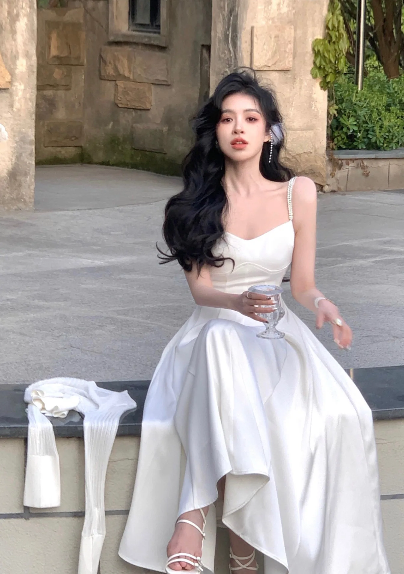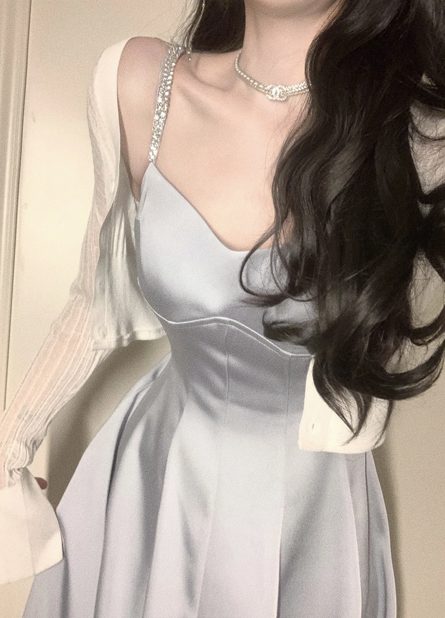 MQTIME - Elegant Diamond Chain Satin Dress Women Slim A-line Vintage Evening Party Dresses Ladies Summer Beach Long Robe