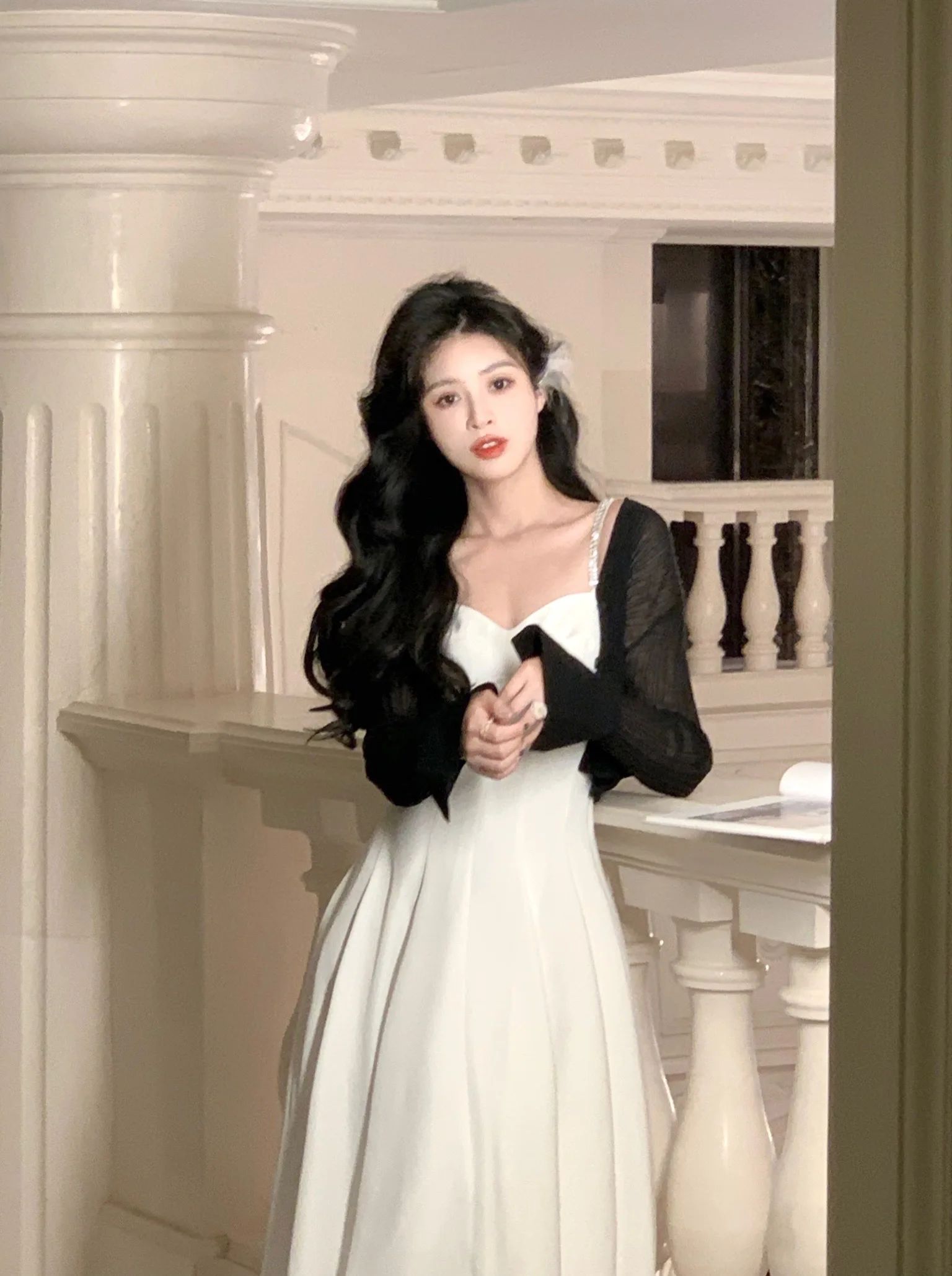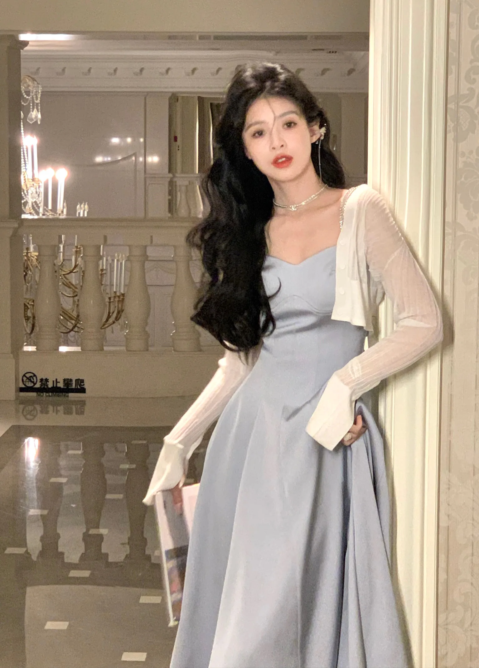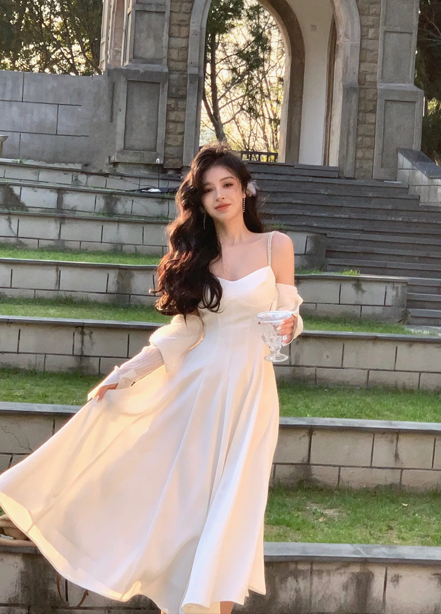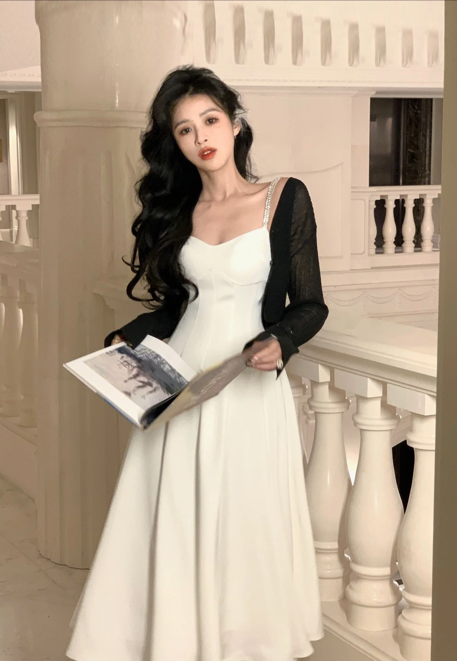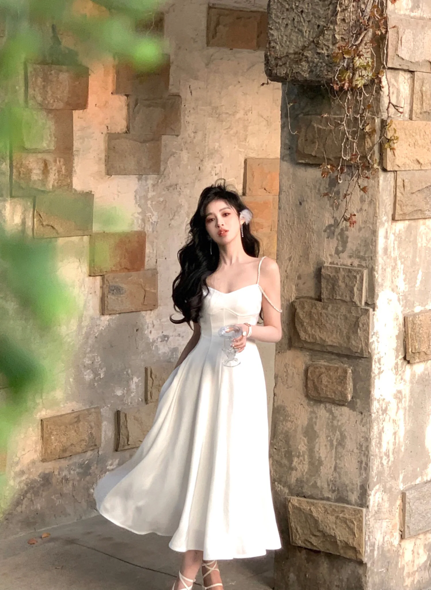 MQTIME - Elegant Diamond Chain Satin Dress Women Slim A-line Vintage Evening Party Dresses Ladies Summer Beach Long Robe
