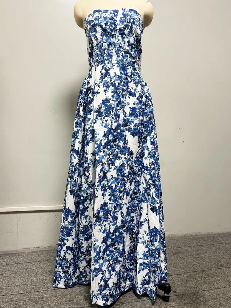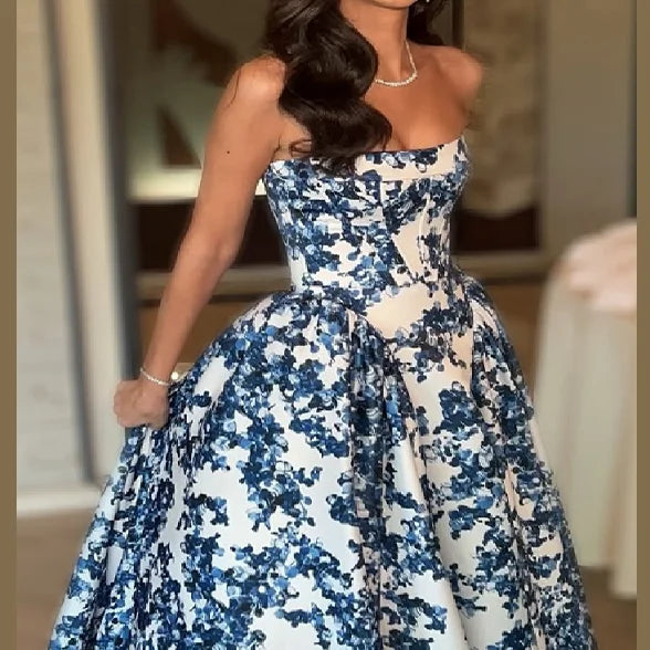 MQTIME  -  Elegant Fairy Evening Dress Printed Off Shoulder Strapless Designers Modest Long Dresses Luxurious Chic Women's Party Clothes